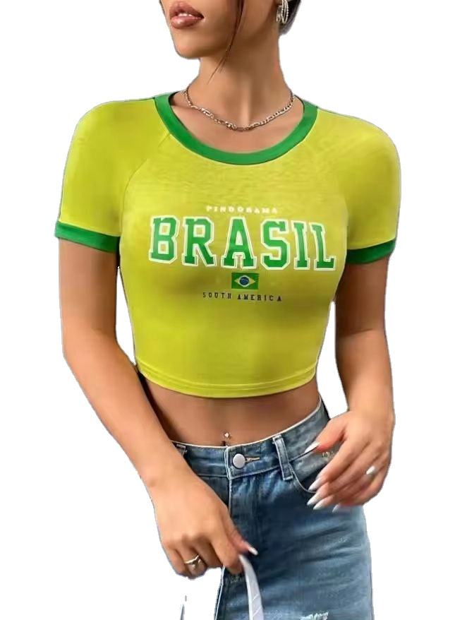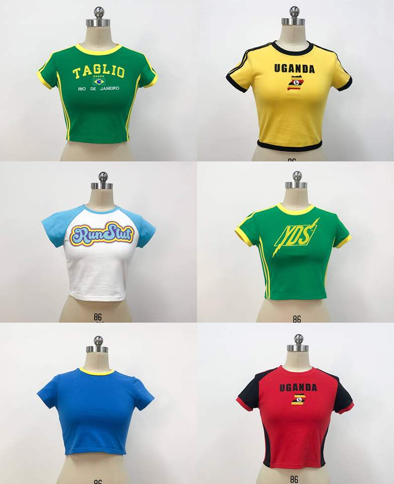 เสื้อยืดแนวสตรีทแบบสั้นของผู้หญิงเสื้อคอ Y2K ผ้าฝ้ายแบบกำหนดเองเข้ารูปเสื้อครอป