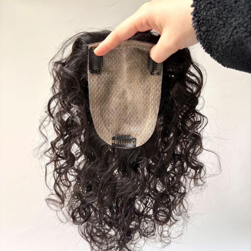 ท็อปเปอร์ผมแท้บราซิล 100% แบบลอนคลื่น คุณภาพสูง วิกผมไหมบางพิเศษ พร้อมหน้าม้า