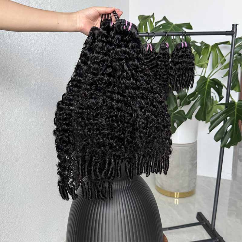 ผมบราซิลเลียนเคิร์ลส์ ยาคิ เวอร์จิ้น เรมี คิวติเคิล อะลายน์ด ดับเบิ้ลดรอน ทำจากผมมนุษย์ 100 กรัม แบบเป็นชุดพร้อมเชือกผูกผม สีดำมูน สำหรับผู้หญิง