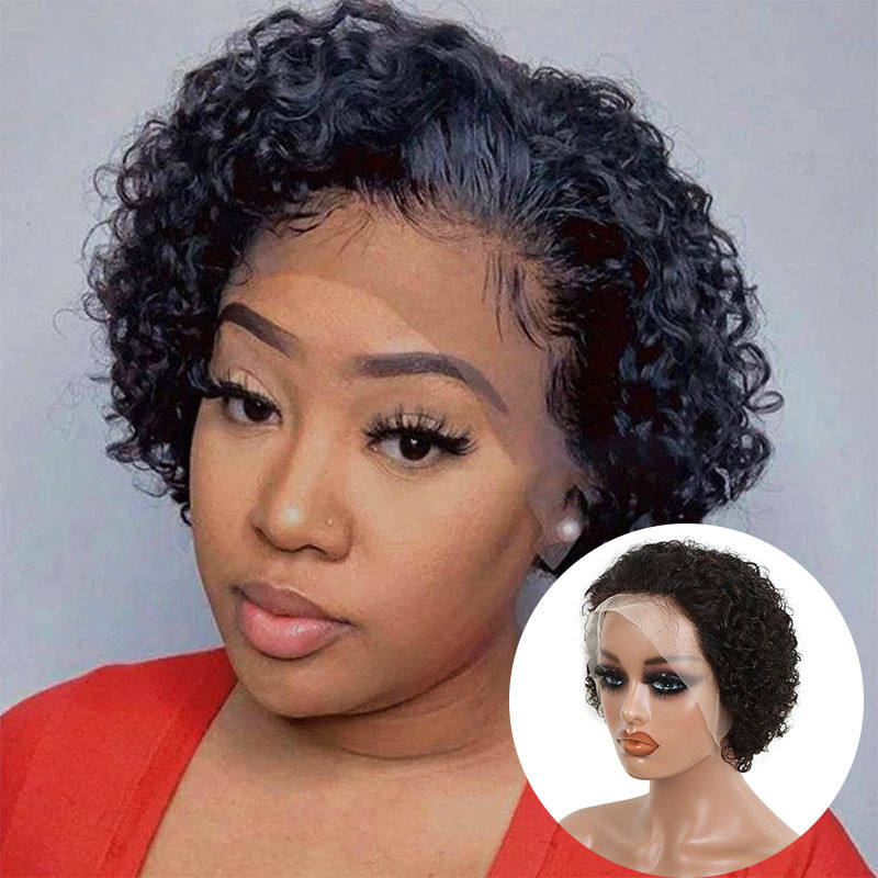 วิกผมบราซิลเลียนแฮร์ 13x1 สี 99j สำหรับตัดผมสั้น วิกผมลูกไม้ด้านหน้าแบบโปร่งใส สำหรับผมลอนหยักศก ความหนาแน่น 180%