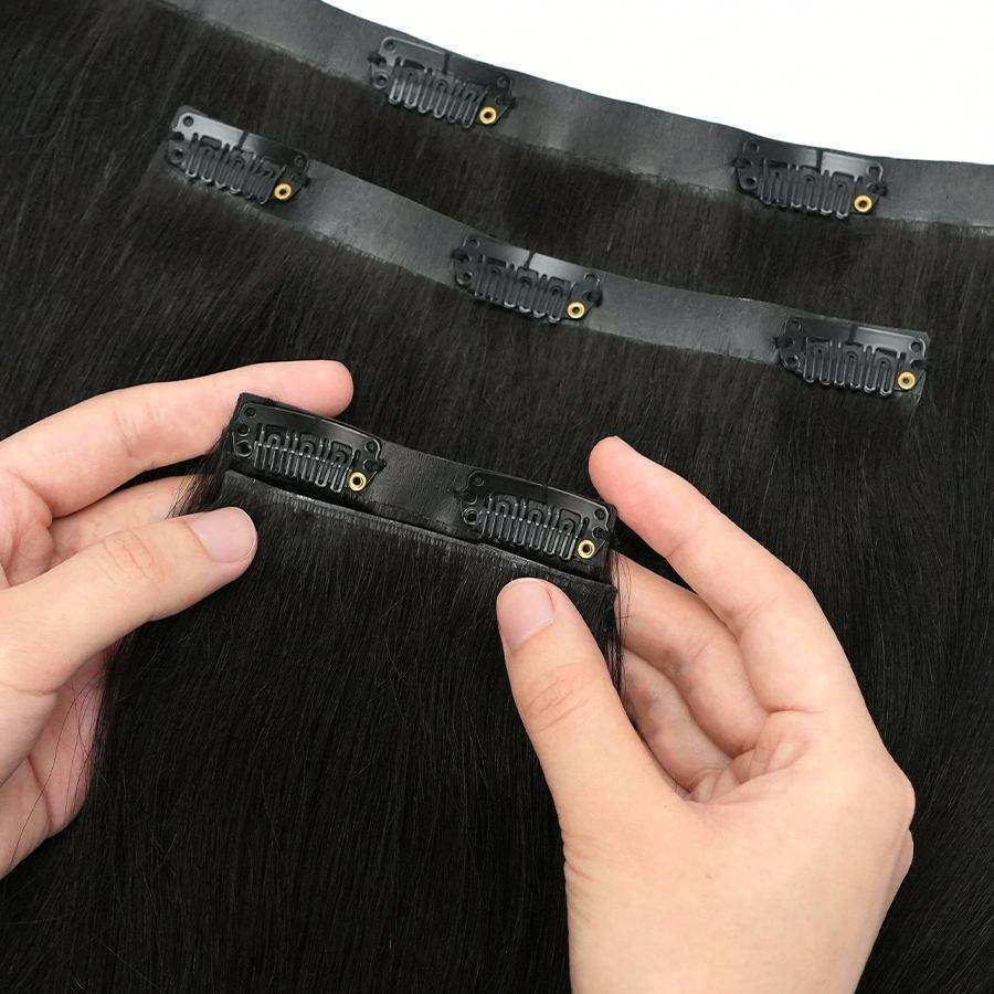 ผมต่อแบบบราซิล 100 กรัม เย็บด้วยเครื่องจักร แบบสองชั้น มองไม่เห็นรอยต่อ ตรง แบบคลิป ติดง่าย ผมแท้ธรรมชาติ ไม่ผ่านการแปรรูป