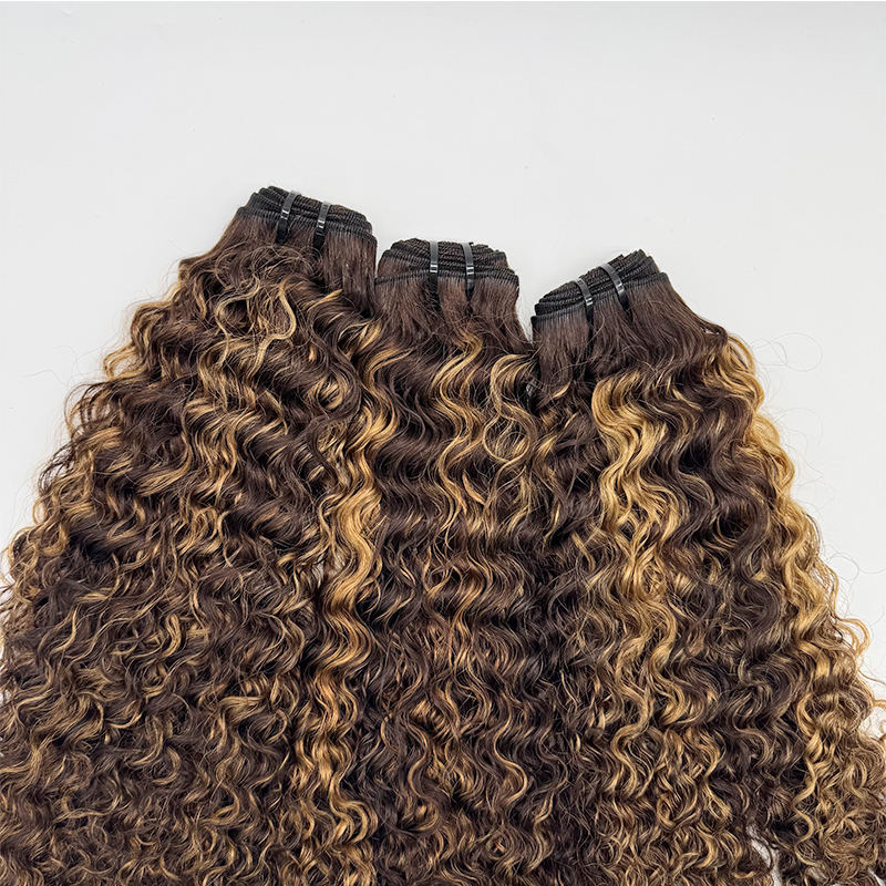 มัดผมมนุษย์หยักศกสีน้ำตาลเปียโนสี P4/27เส้นผมแคมโบเดียนแบบคู่พร้อมไฮไลต์