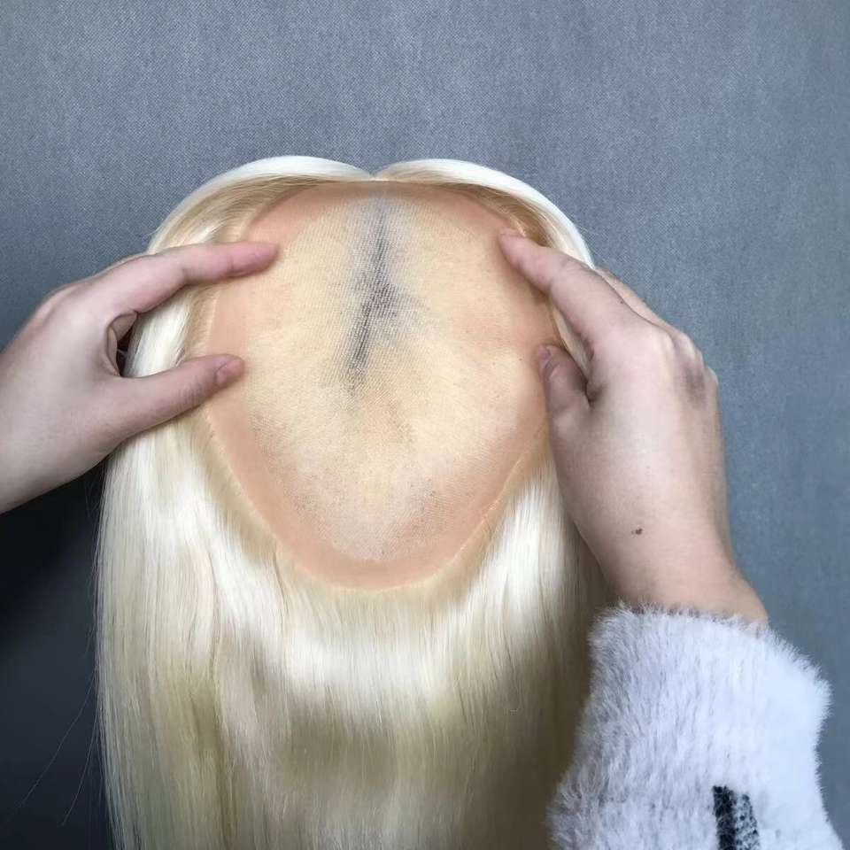 ท็อปเปอร์ผมแท้บราซิลแบบเรมี่ ขนาด 6x8" 7x9" 8x10" ความยาว 14 นิ้ว ผมตรงแบบโมโน ความหนาแน่น 130% ปมมองไม่เห็น สำหรับผู้หญิง