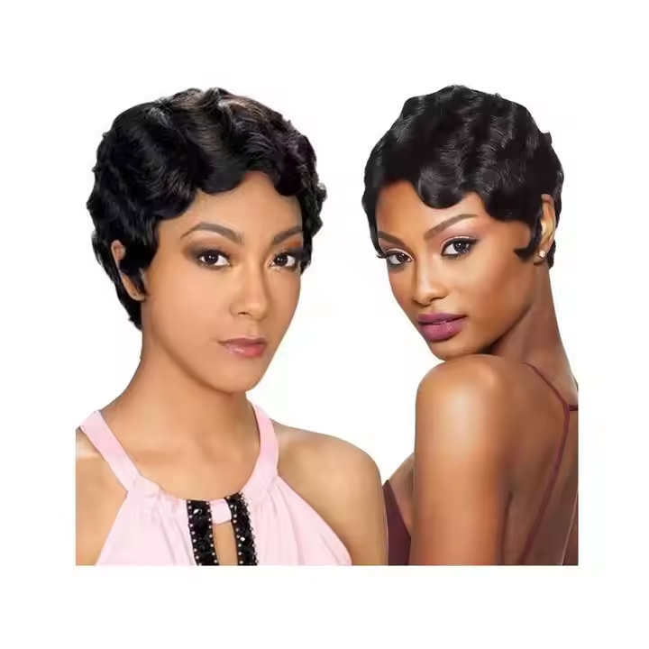 วิกผมสั้นแบบบราซิลเลี่ยนวิกผมมนุษย์วิกผมแบบเต็มรูปแบบสำหรับผู้หญิงผิวดำน่ารักจริงๆ