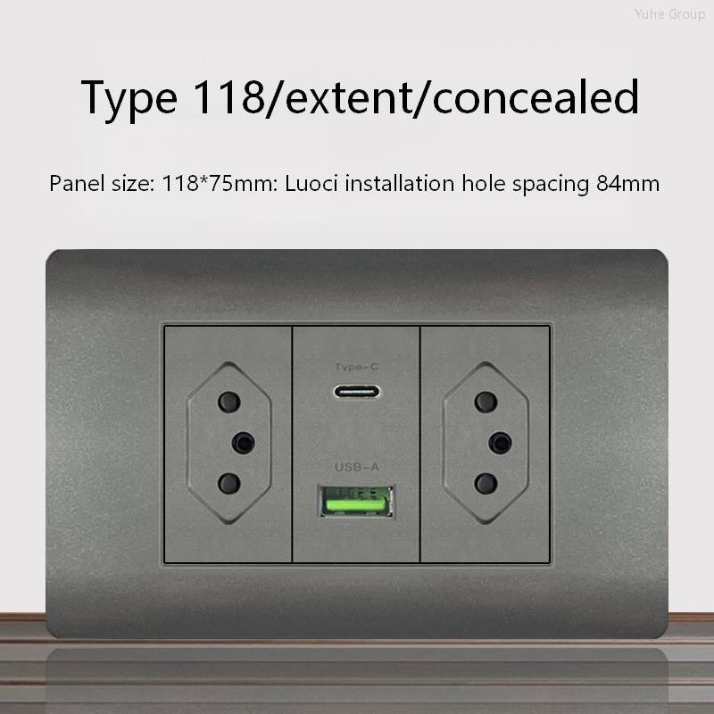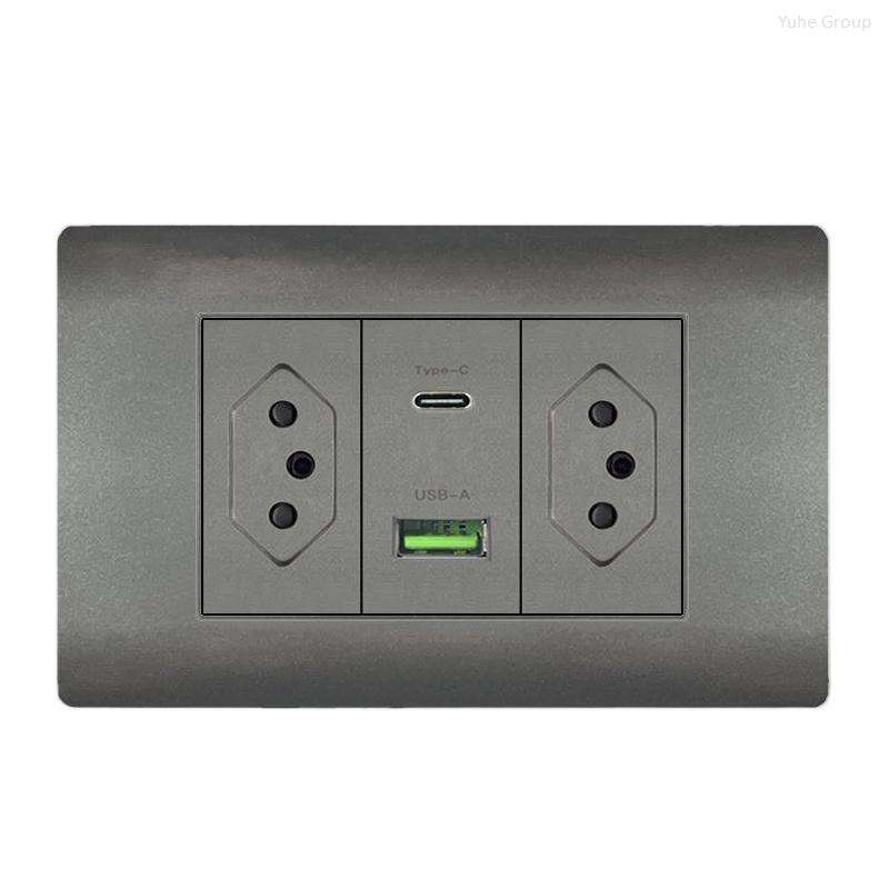 เต้ารับไฟฟ้าแบบติดผนังมาตรฐานบราซิล 20A พร้อมพอร์ต USB Type-C 118 แผงสัมผัส IP20 วัสดุ PC