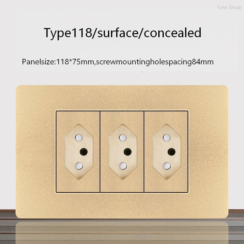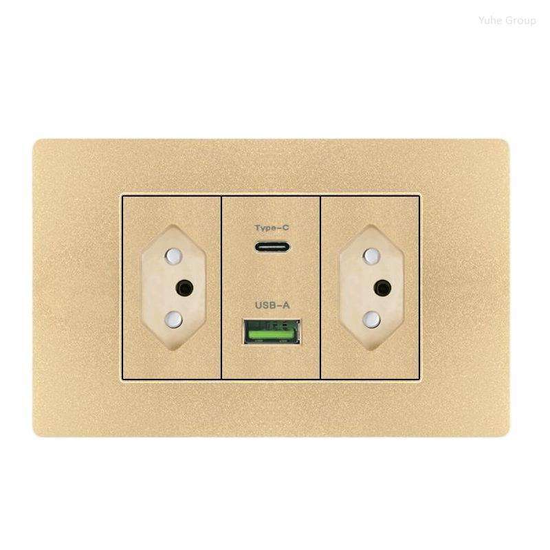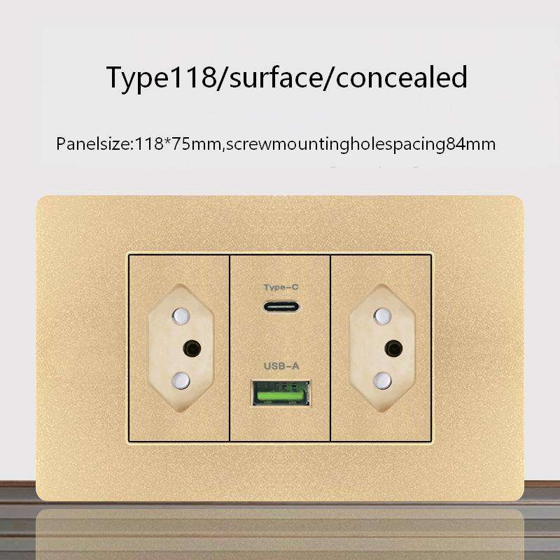 เต้ารับติดผนังแบบสัมผัส USB มาตรฐานบราซิล ทนทาน รองรับไฟ 10A/20A พร้อมปลั๊กแบบ 6 ขา รุ่น 118