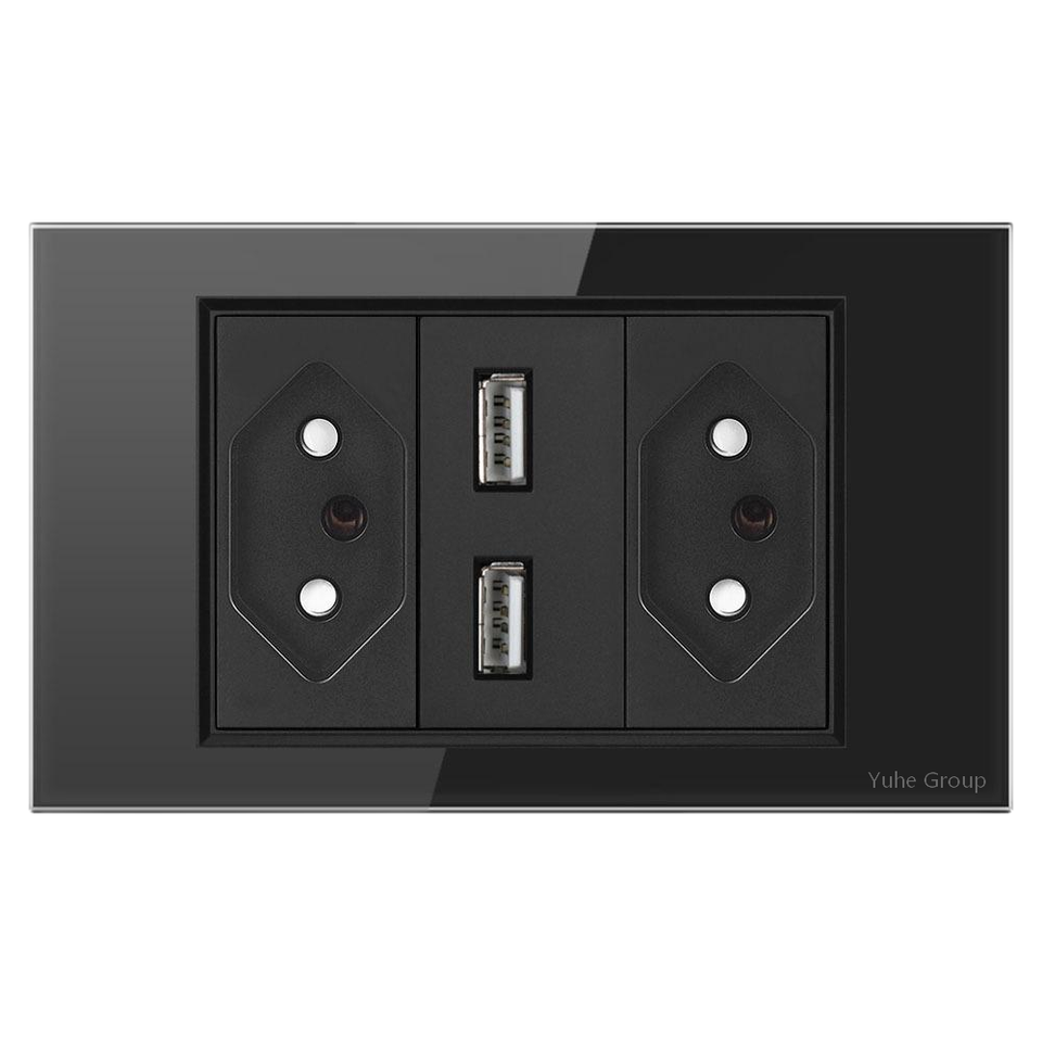 เต้ารับไฟฟ้ามาตรฐานบราซิลพร้อมแผงสัมผัสพีซีสุดหรู 3 ช่อง ป้องกันน้ำ IP20 16A/250V