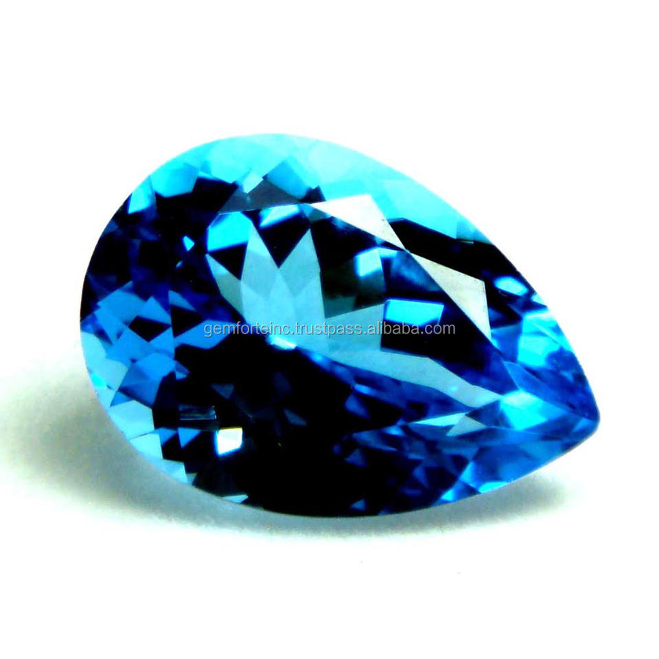เบาะลูกแพร์ทรงกลมประดับพลอยเทียมสีฟ้าสไตล์บราซิลทรงหลวมขนาดปรับเทียบขนาดบุษราคัมจากธรรมชาติ