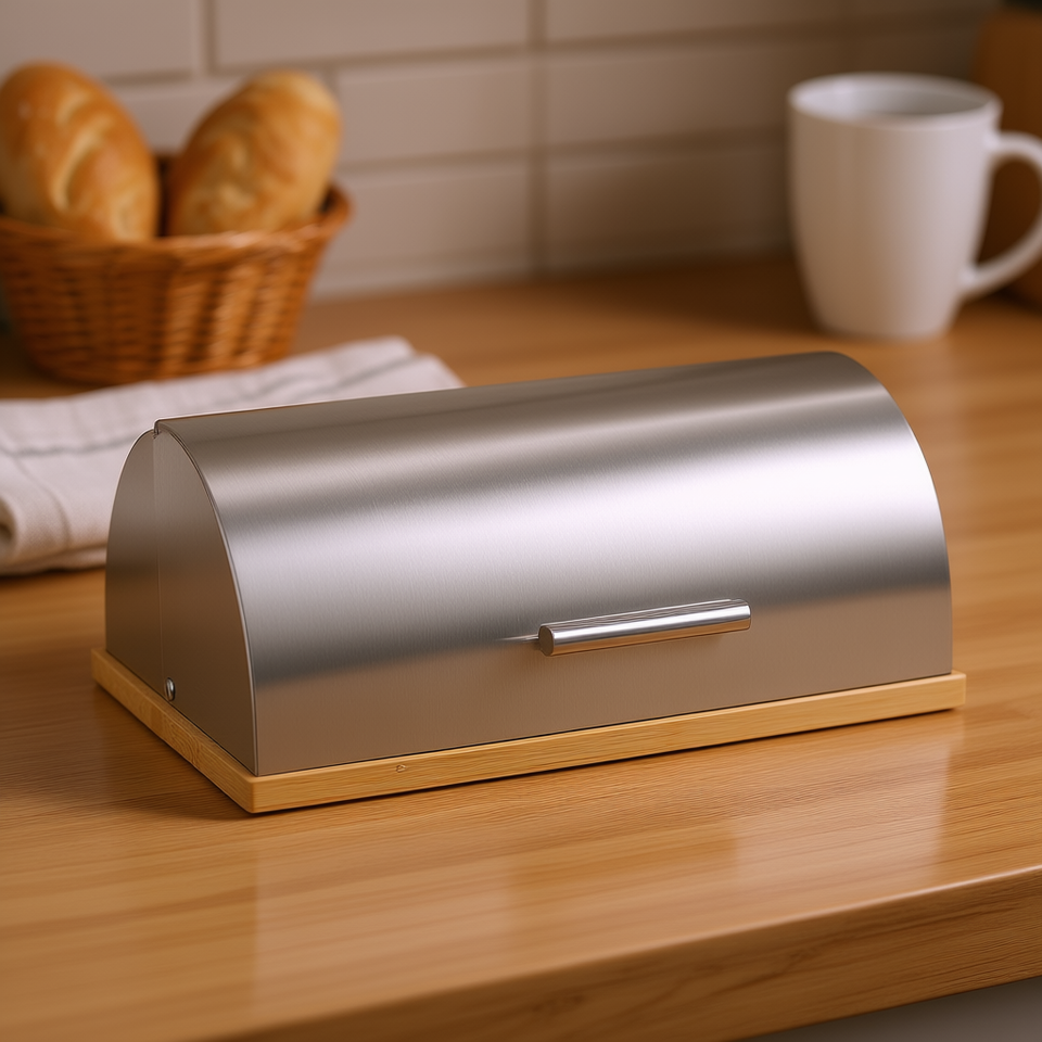 กล่องใส่ขนมปังไม้ไผ่สแตนเลส 39.5x28x16 ซม. สีเงินธรรมชาติ