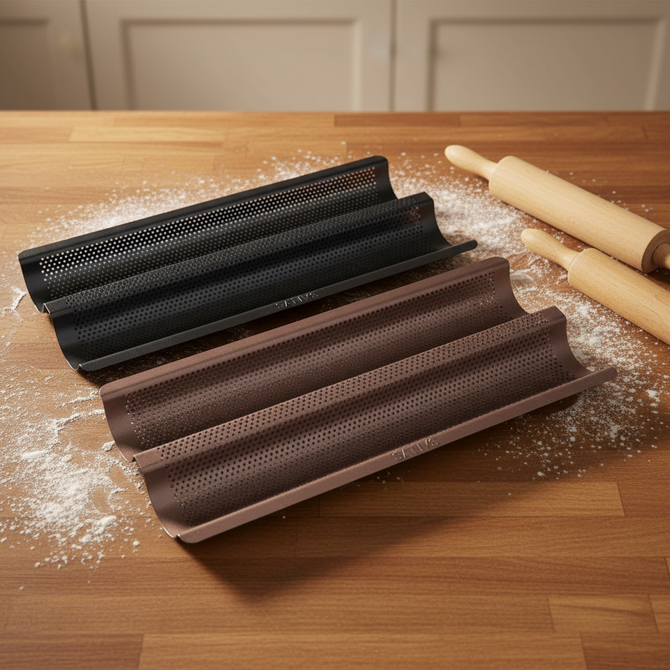 ถาดอบขนมปัง 2 ชั้น และ 3 ชั้น ทำจากเหล็กกล้าคาร์บอน เคลือบ PTFE ใช้ซ้ำได้ ปลอดภัยสำหรับเครื่องล้างจาน
