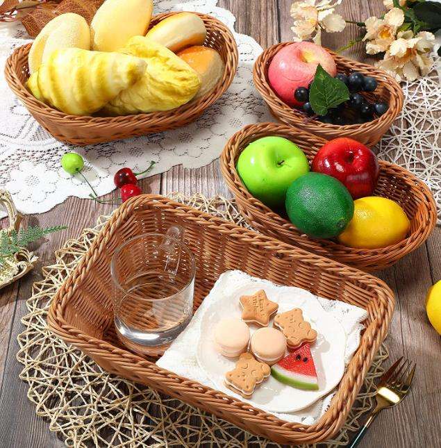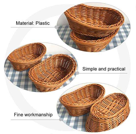 ตะกร้าโชว์ขนมปัง พลาสติกหวาย ทนทาน สำหรับซุปเปอร์มาร์เก็ต ผลไม้ ผัก สำหรับร้านเบเกอรี่ ร้านขายของเกษตร และการขายปลีก