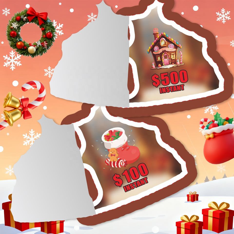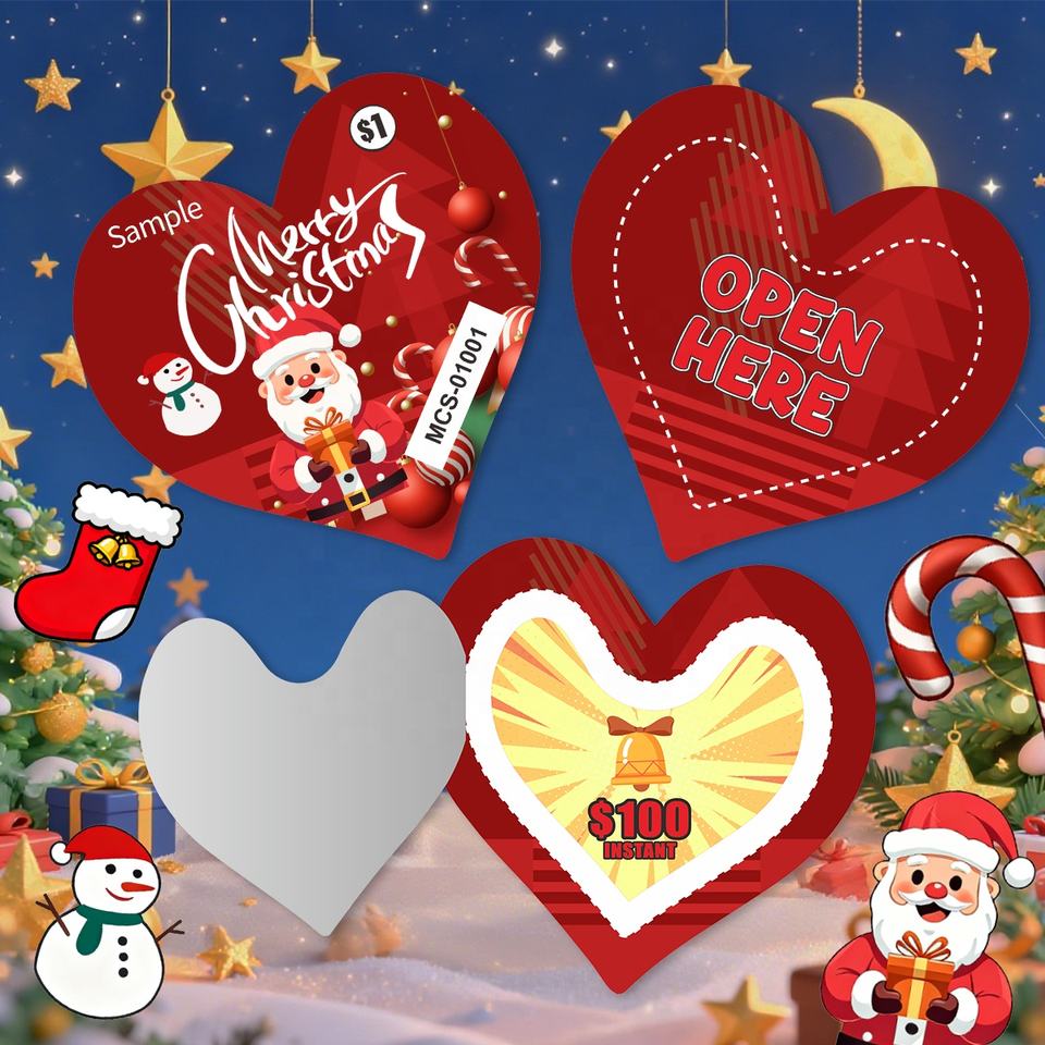 ลอตเตอรี่แบบเปิดและดึงได้รูปแบบหนึ่งหน้าต่างกระดาษรีไซเคิลตั๋วการพนันชนะรางวัลคริสต์มาสรูปร่างพิเศษที่กำหนดได้
