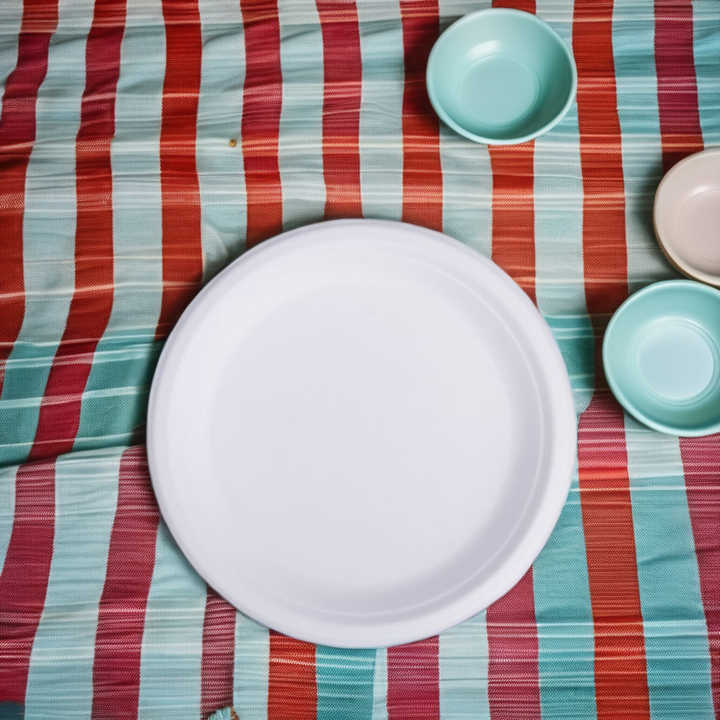 จานปิกนิกทรงกลมทำจากชานอ้อย ทนทานต่อการแตกหัก เหมาะสำหรับการไปเที่ยวในสวนสาธารณะและปิกนิกสำหรับครอบครัว