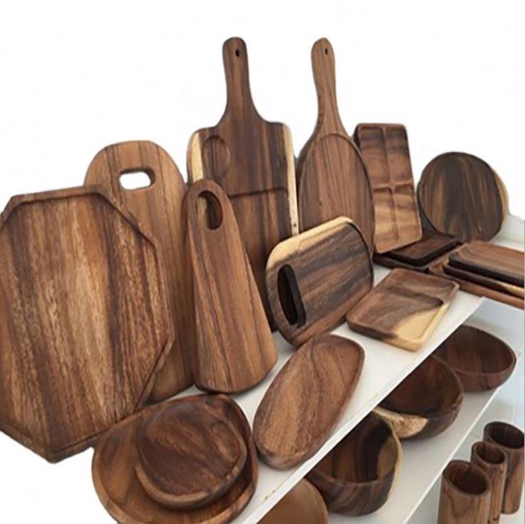 ถาดไม้อะคาเซียอาหารเช้าถาดไม้เนื้อแข็งสไตล์ยุโรปตะวันตกสำหรับบ้าน