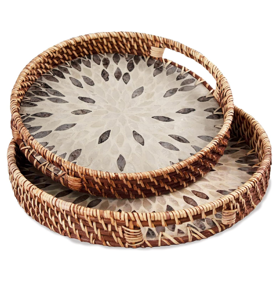 ถาดรองเสิร์ฟไข่มุกสำหรับตกแต่งอาหารเช้าถาดหวายไข่มุกแท้สำหรับคุณแม่