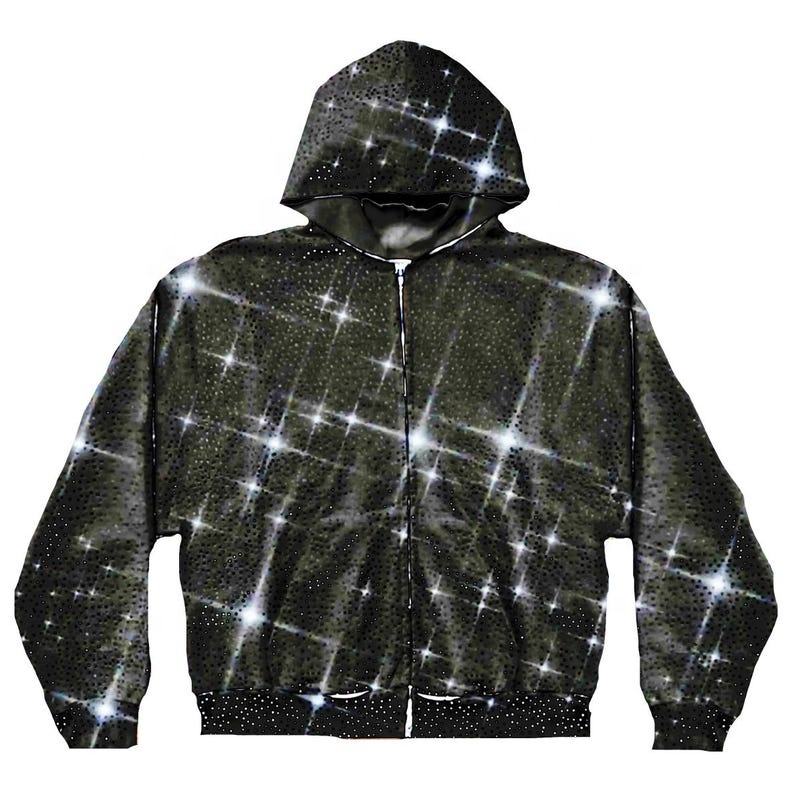 เสื้อฮู้ดดี้ผ้าฝ้าย 100% ระบายอากาศได้ดี ประดับด้วยคริสตัล แบบสวมหัว คุณภาพสูง สั่งทำได้