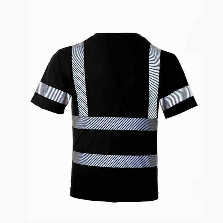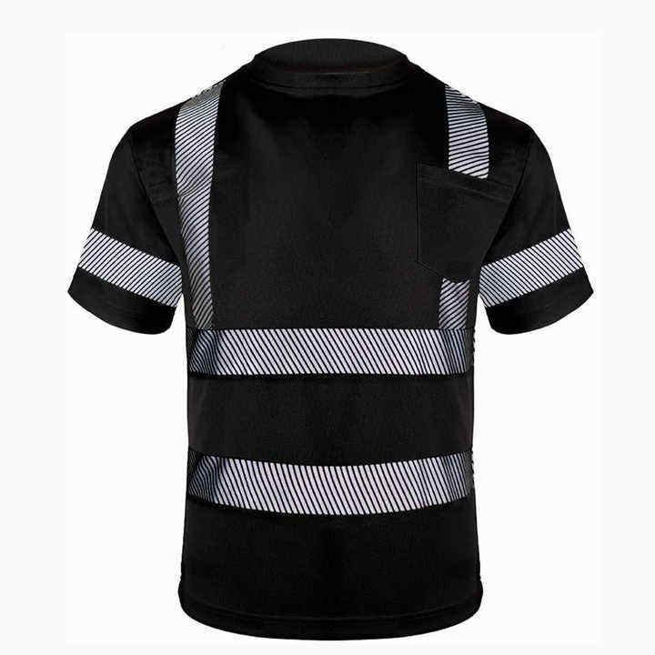 เสื้อยืดนิรภัยแขนสั้นผ้าโพลีเอสเตอร์ 100% ระบายอากาศได้ดี สะท้อนแสง พร้อมกระเป๋าหน้า เสื้อยืดนิรภัยสำหรับทำงาน