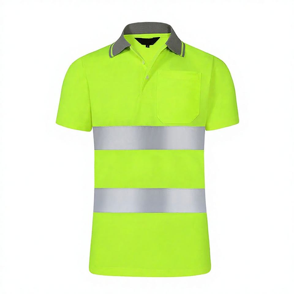 เสื้อโปโลทำงานนิรภัยสะท้อนแสงกันน้ำระบายอากาศได้ มาตรฐาน ANSI Class 2 ยี่ห้อ Mangoes Fashion - สีและโลโก้ปรับแต่งได้ ผลิตจากโพลีเอสเตอร์ 100%