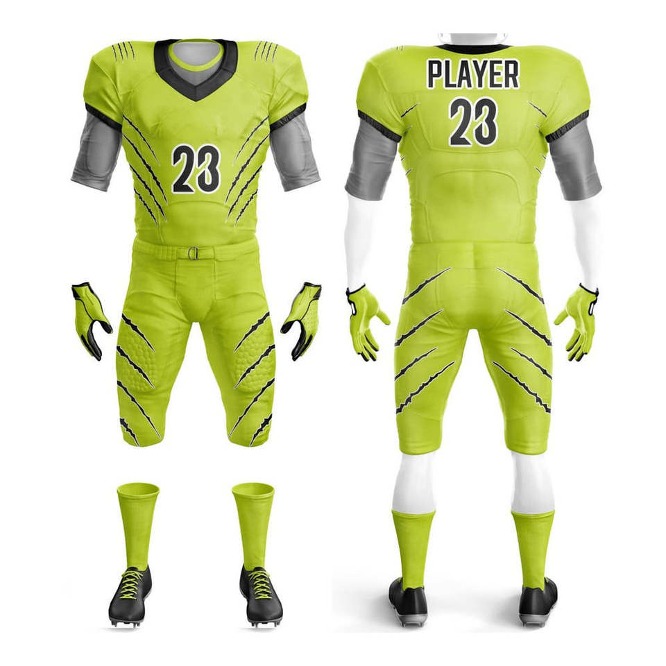 เสื้อฟุตบอลอเมริกันระบายอากาศดี ดีไซน์โดดเด่น ราคาถูก ชุดกีฬาผู้ชาย ลดราคา สั่งทำได้ ลายพิมพ์แบบ Sublimation กางเกงขาสั้น ป้องกันรังสียูวี
