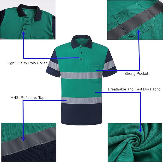 Breathable Anti-Bacterial Safety Polo Shirts Polyester Wholesale High Quality Dual Reflective Hi Visibility Waterproof Workwear