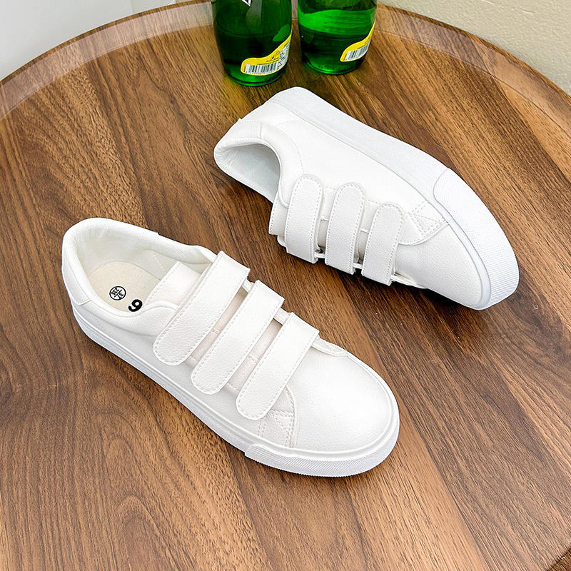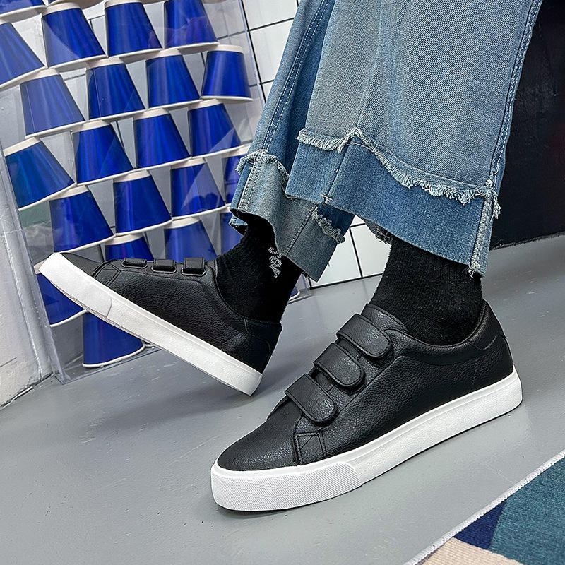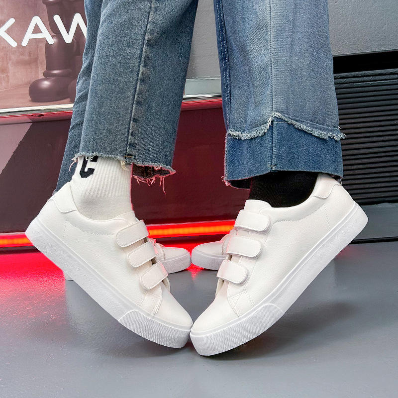 รองเท้าสเก็ตสามสายรัดหนังเทียมระบายอากาศได้ดี รองเท้าลำลองผู้ชาย รองเท้าส้นเตี้ยผู้หญิง