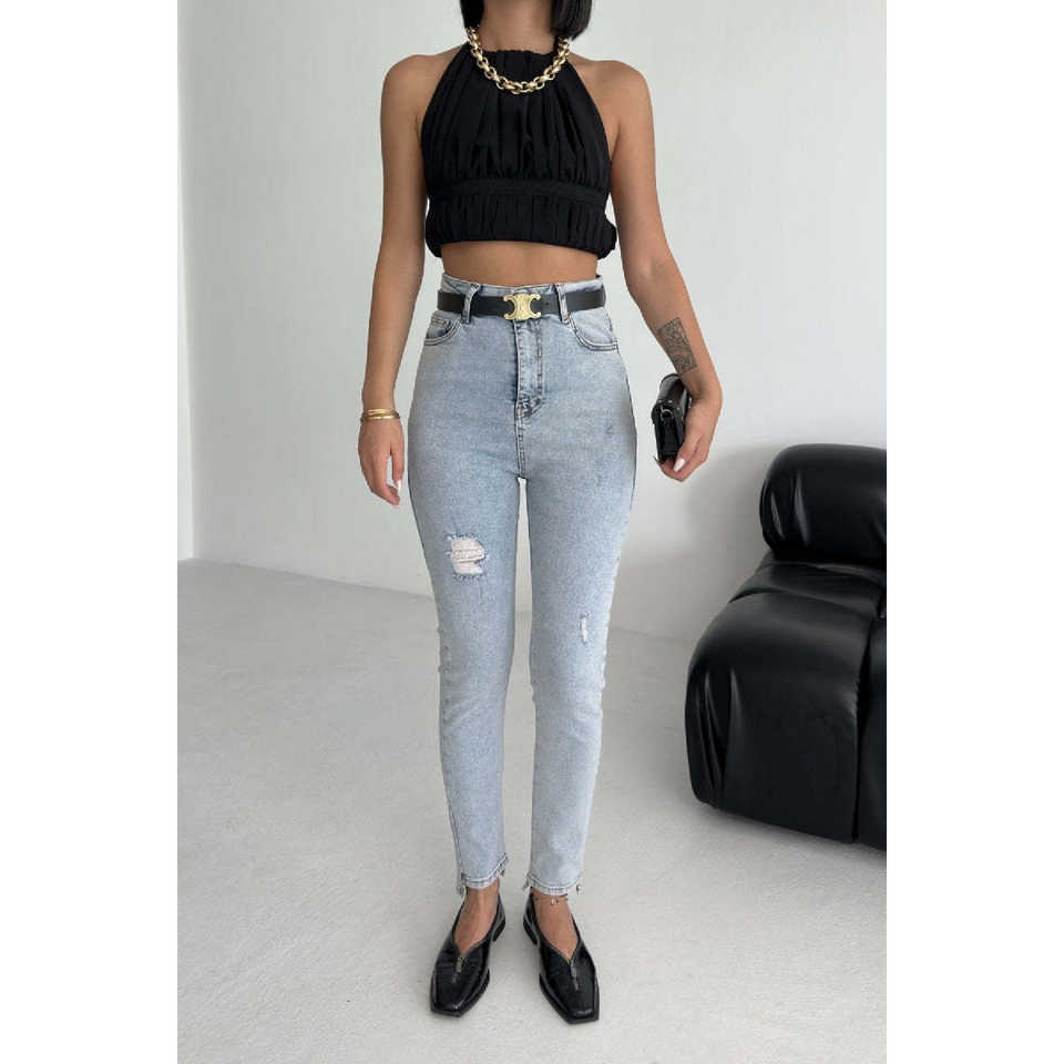 กางเกงยีนส์ผู้หญิงทรงสลิม/สกินนี่ ขาไม่สมมาตร ระบายอากาศได้ดี ทรงคาร์โก้/ทรงดินสอ เอวยางยืด สไตล์สเตรช