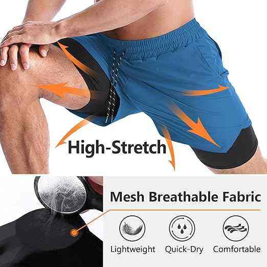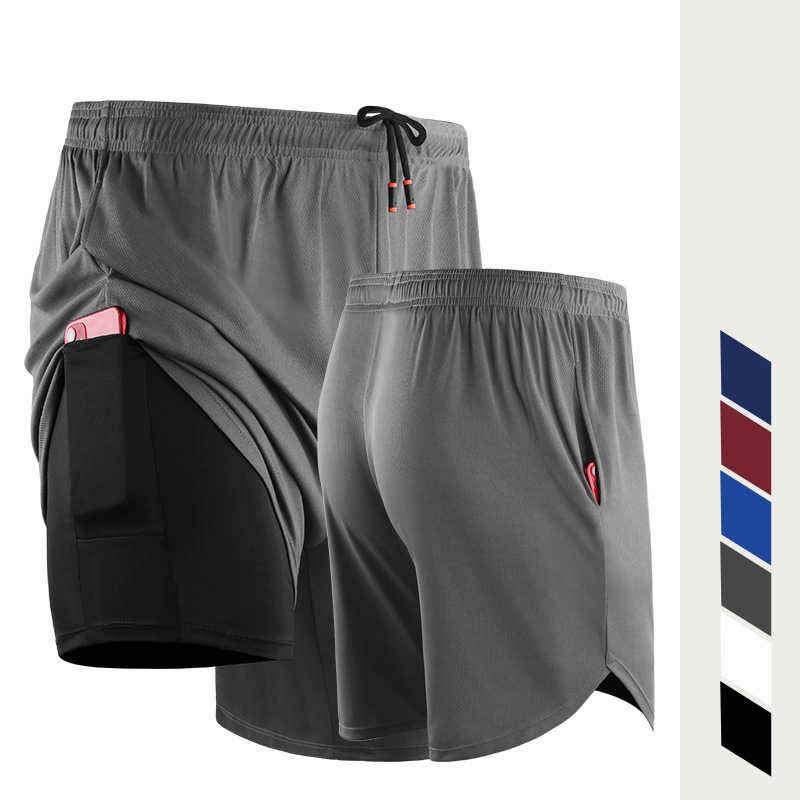 กางเกงขาสั้นออกกำลังกายแบบทูอิน1ระบายอากาศได้ดีสำหรับผู้ชายกางเกงขาสั้นเล่นยิมออกกำลังกายแบบปรับแต่งได้สำหรับผู้ชาย