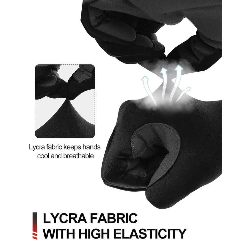 ยืด, กันน้ำ, ไม่ลื่น, สายรัดข้อมือปรับได้, ใช้งานร่วมกับ Touchscreen, Hand Grips, น้ำหนักเบา, กันลม, ระบายอากาศ, แห้งเร็ว, ความชื้นwicking, เต็มนิ้ว, Half Finger/Fingerlessคุณสมบัติ