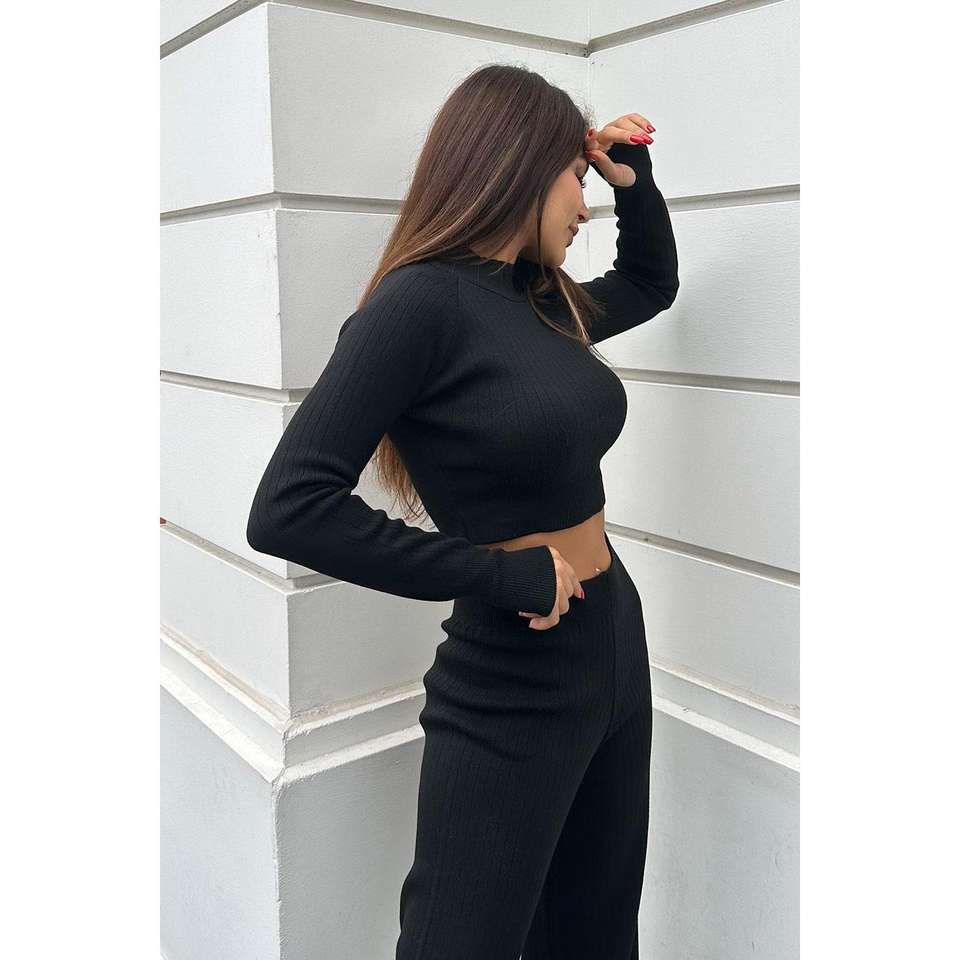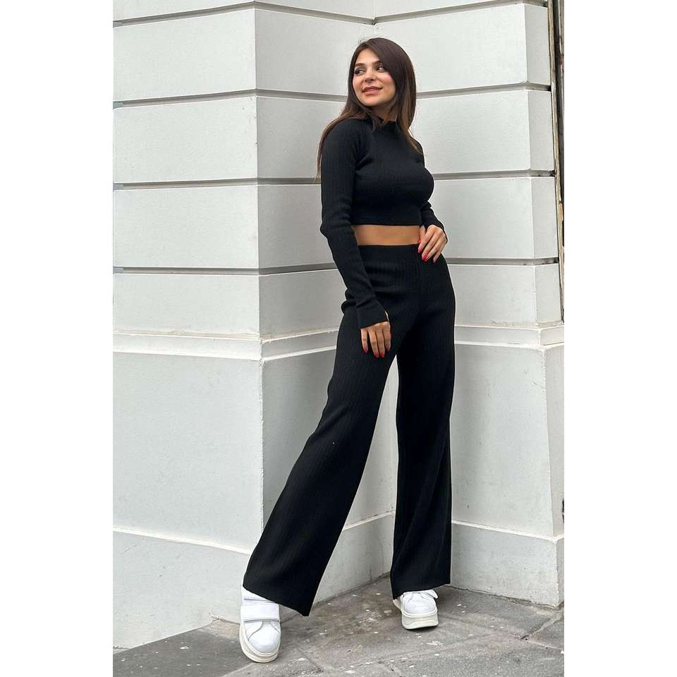 กางเกงทรงตรงสีดำระบายอากาศได้ดี เอวสูง ดีไซน์แบบสูท