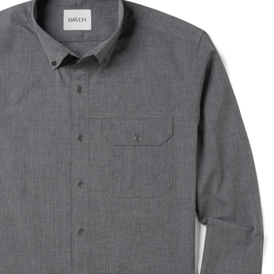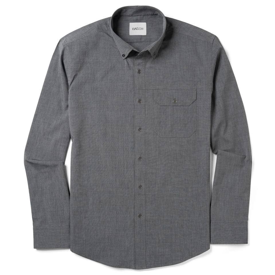 เสื้อเชิ้ตทำงานลำลองสำหรับผู้ชายผ้าคอตตอนเทคโนโลยีย้อมเส้นด้ายทรงปกติแบบคลาสสิก