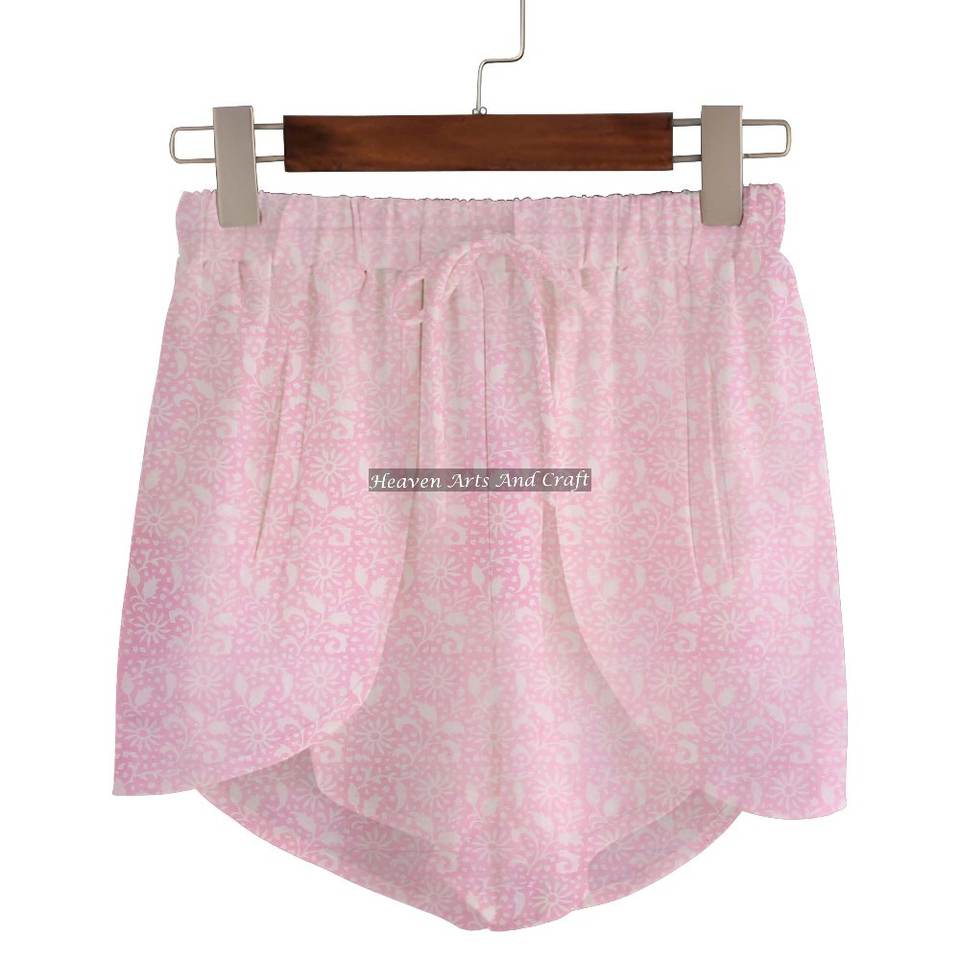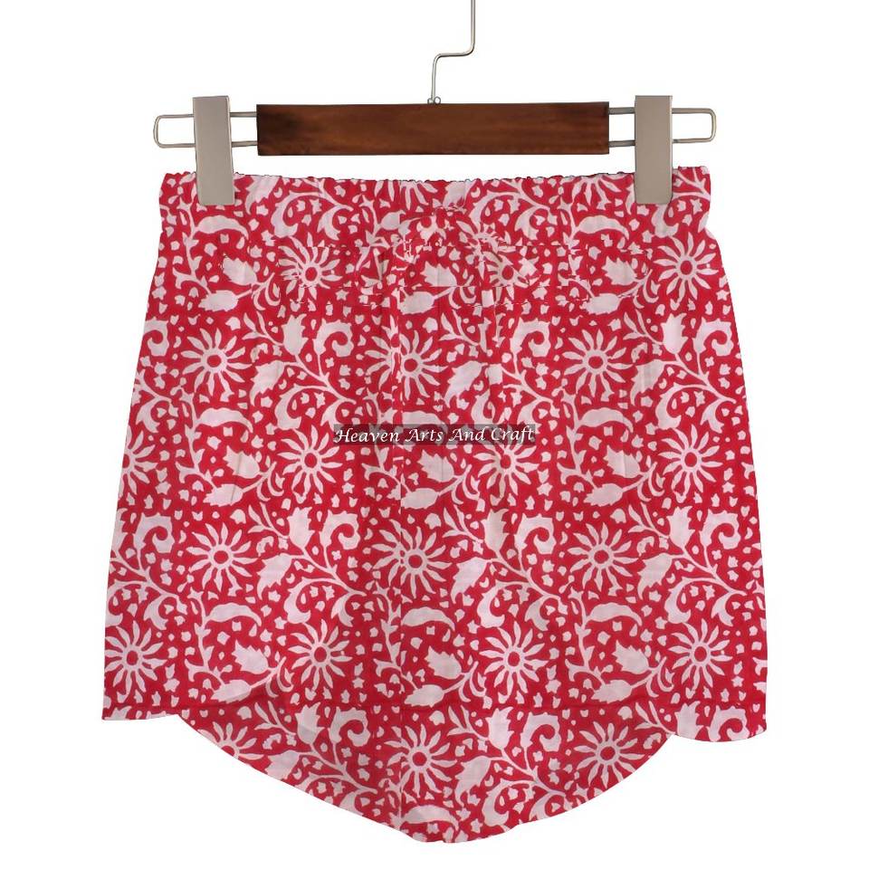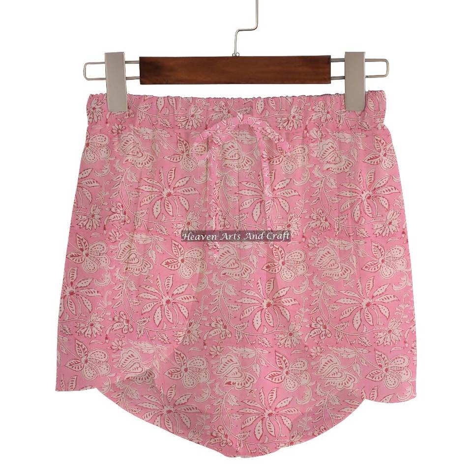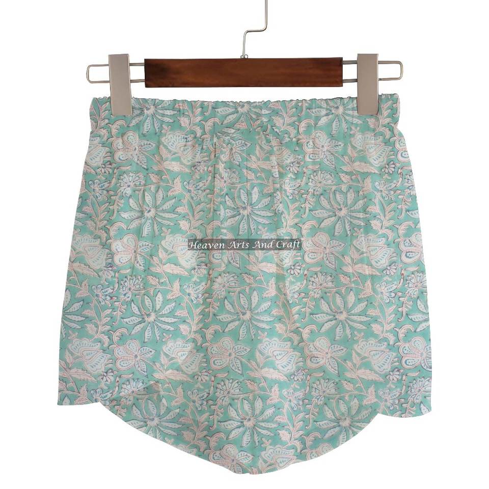 ชื่อสินค้า:กางเกงขาสั้นผ้าฝ้าย 100% พิมพ์ลายบล็อกมือ
