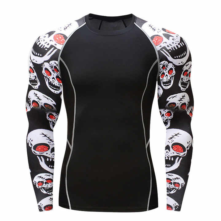 เสื้อรัดรูประบายอากาศได้ดี บริการ OEM แบบกำหนดเอง เสื้อแรชการ์ดคอกลมสำหรับผู้ชาย UPF50+ แห้งเร็ว เหมาะสำหรับการต่อสู้และออกกำลังกาย แขนยาว
