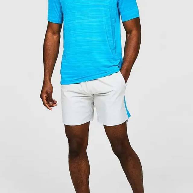 ชุดกีฬาผ้าโพลีเอสเตอร์ 100% ระบายอากาศได้ดี สีตัดกัน ผลิตในปากีสถาน กางเกงออกกำลังกายพิมพ์ลาย กางเกงยิมสั้น สกรีนโลโก้ได้ตามต้องการ