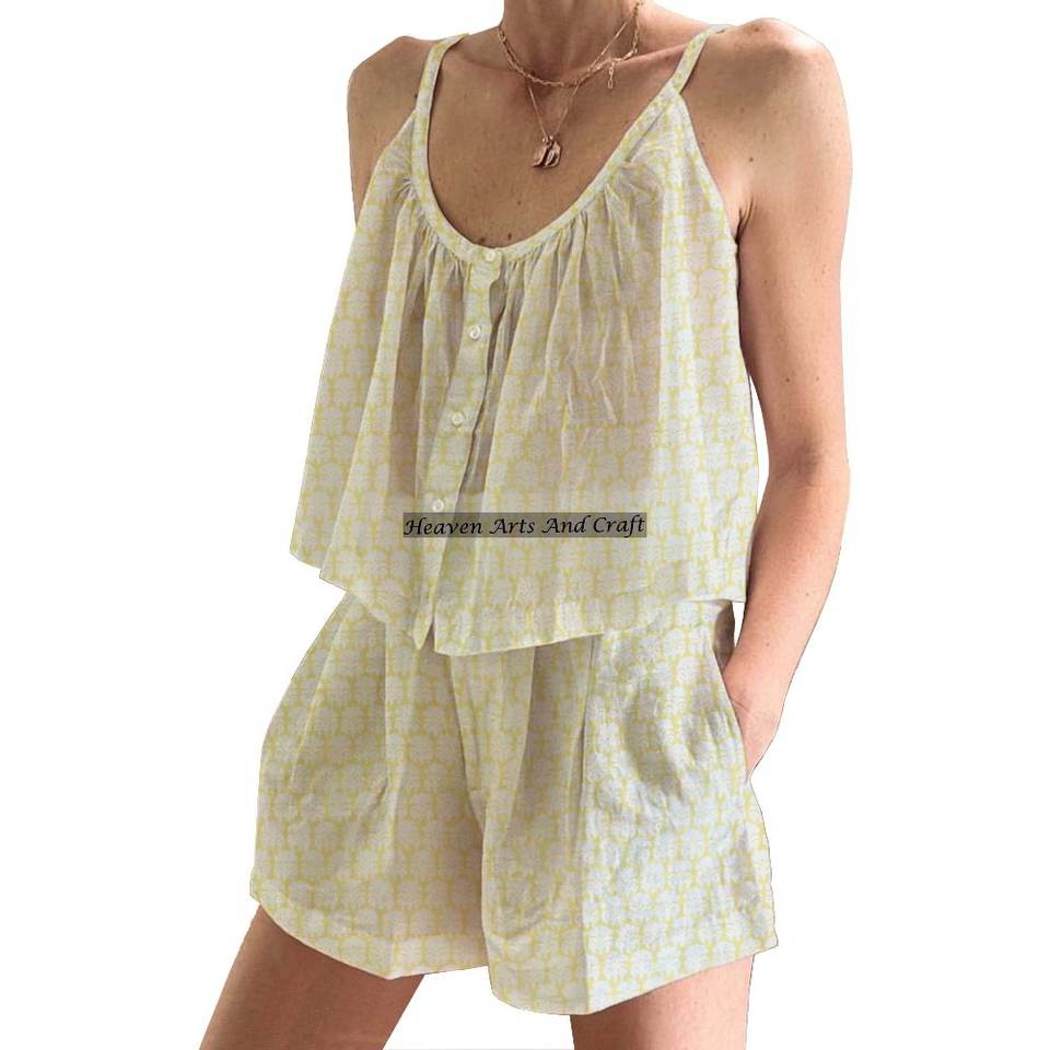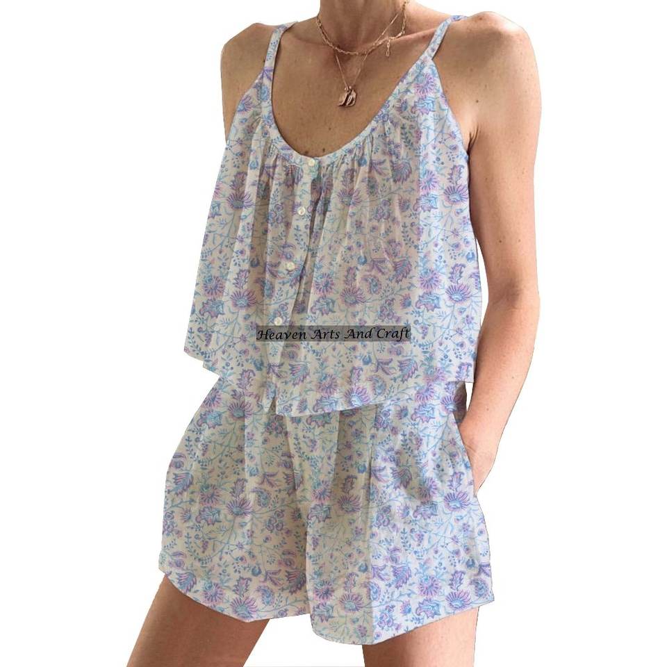 ชุดนอนขาสั้นพิมพ์ลายผ้าฝ้าย 100%, ผ้าฝ้ายทอ