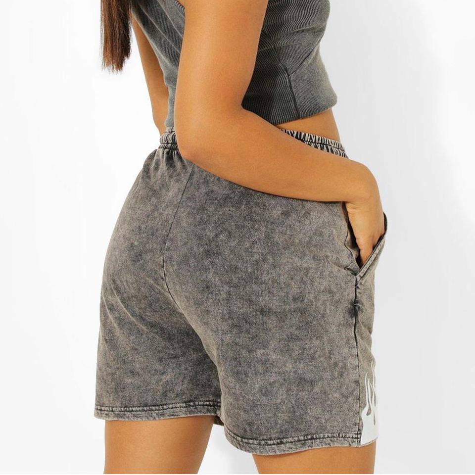 กางเกงขาสั้นผ้าฝ้ายระบายอากาศเอวสูงของผู้หญิงซักด้วยกรดจากฝรั่งเศสผ้าผลซักได้กำหนดโลโก้ได้อย่างรวดเร็ว