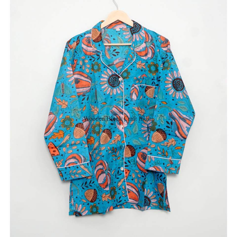 ชุดนอนผ้าฝ้ายระบายอากาศดี เสื้อชุดนอนยาว ชุดนอนสำหรับงานแต่งงาน ชุดนอนใส่สบาย ชุดนอนลายดอกไม้ เหมาะสำหรับฤดูร้อน