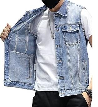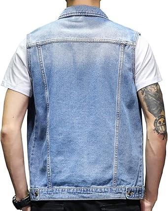 เสื้อกั๊กผ้าเดนิมคอตตอน100% คลาสสิกสำหรับผู้ชายเสื้อโค้ทแขนกุดย้อนยุคสำหรับนักขี่มอเตอร์ไซด์มีกระดุมไม่ยับออกแบบได้ตามต้องการ