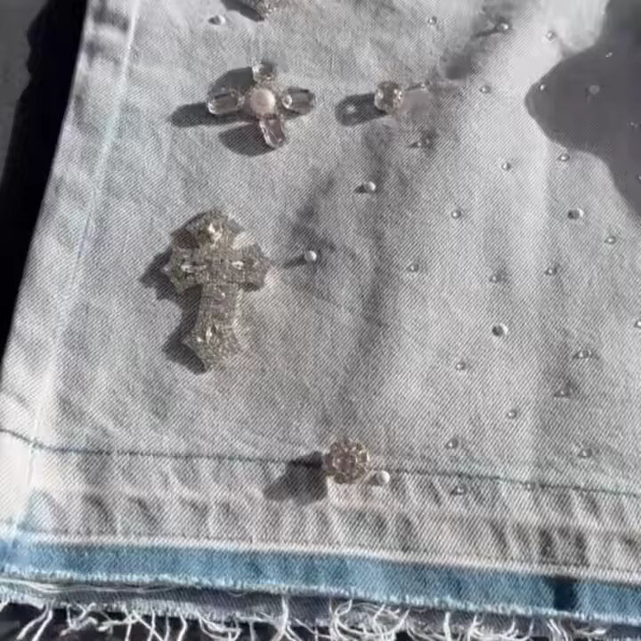 Breathable Customized Men's Rhinestone Denim Short Pants Men Jeans Shorts High Quality Custom Design and Logo Accepted