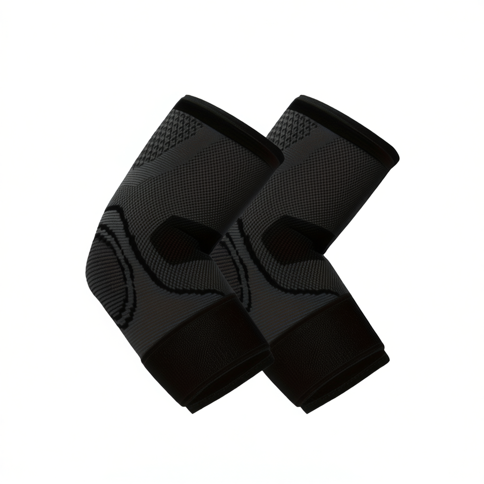แผ่นรองข้อศอกแบบระบายอากาศได้พร้อมสายรัดกันลื่นป้องกันการเคล็ดขัดยอกสำหรับการออกกำลังกายในร่มกลางแจ้ง 2 แพ็ค
