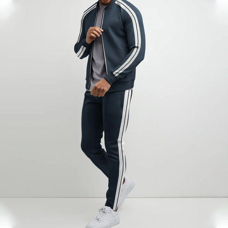 ชุดวอร์มสำหรับผู้ชายผ้าระบายอากาศได้ดีแห้งเร็วแบบใหม่ลายทางด้านข้างสีขาวขนาดพอดีตัวสั่งทำ