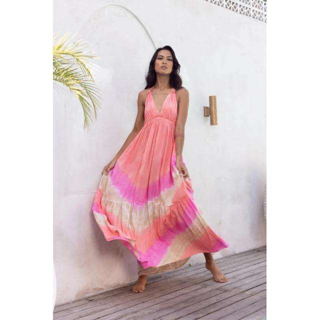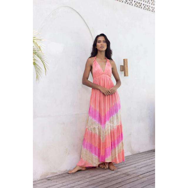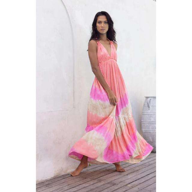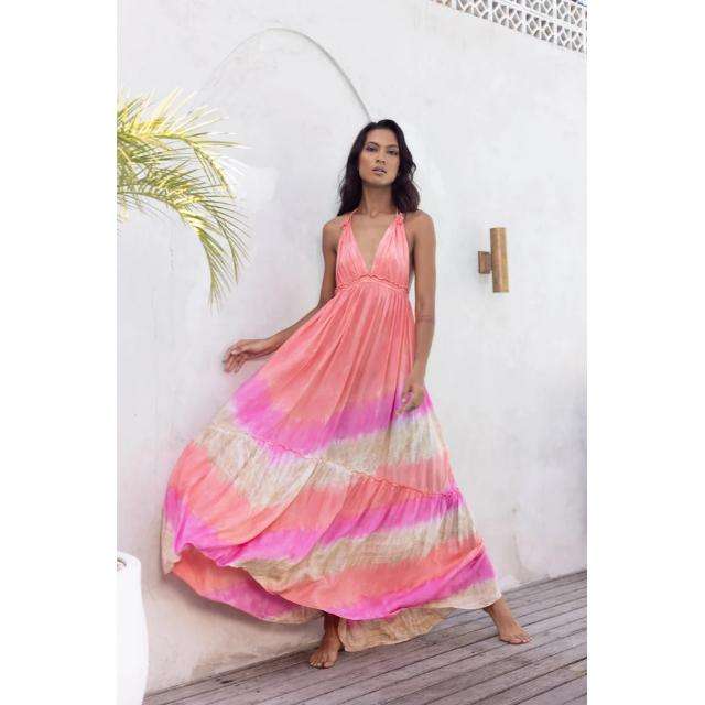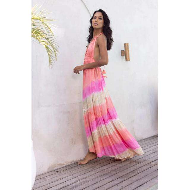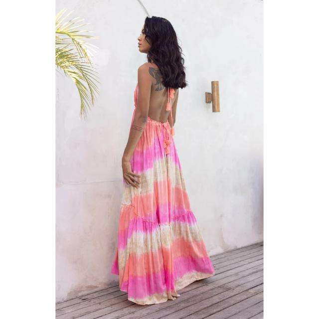 ชุดเดรสยาวแบบผูกคอ ทำมือ ระบายอากาศได้ดี สีสันเขตร้อน ผ้าฝ้าย 100% ให้ความสง่างามอย่างเป็นธรรมชาติ
