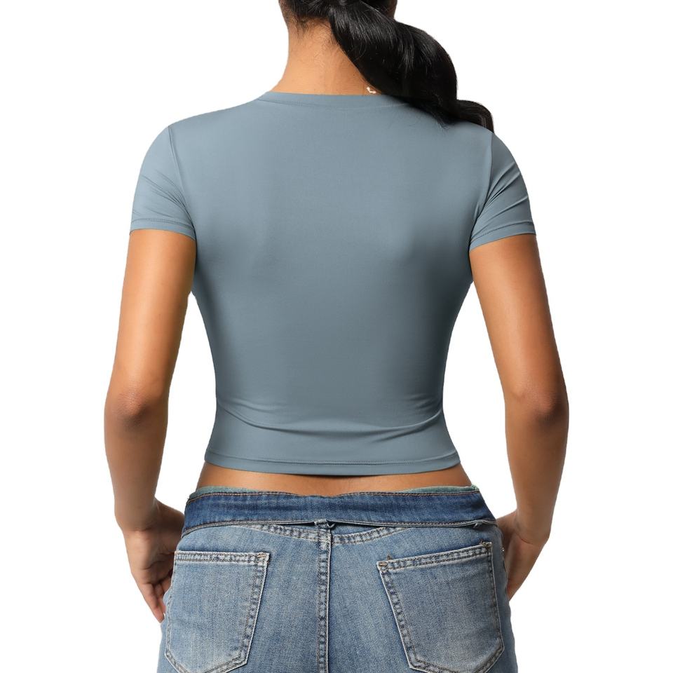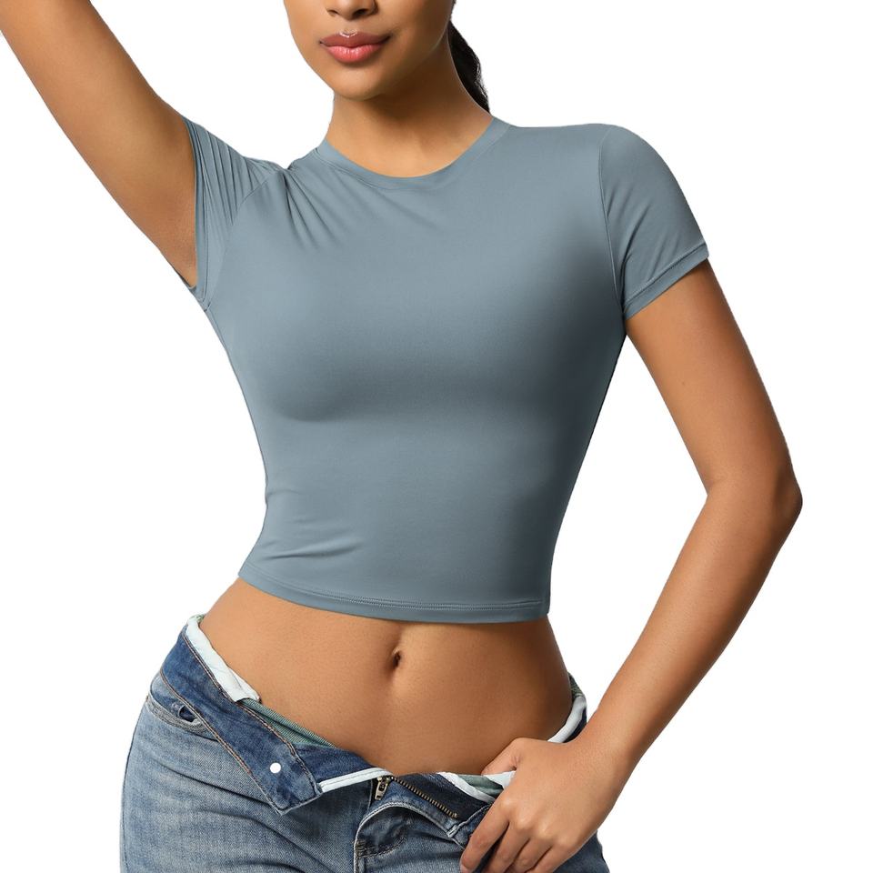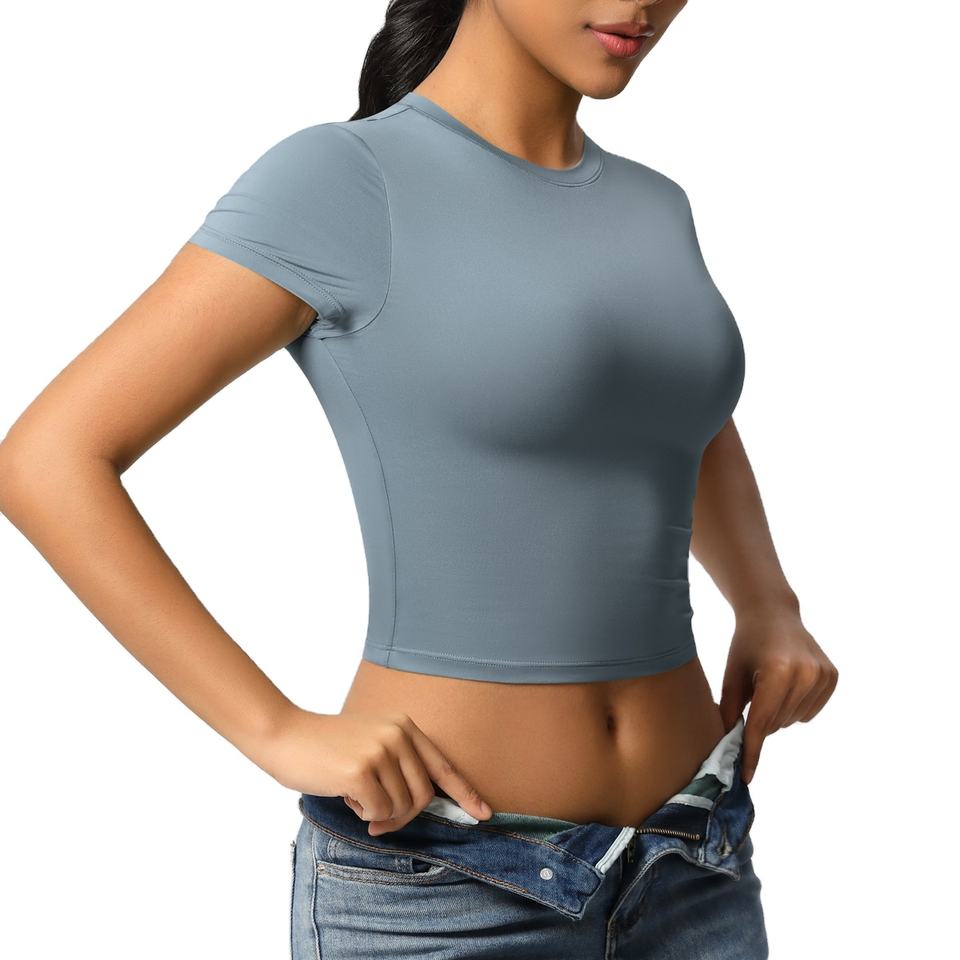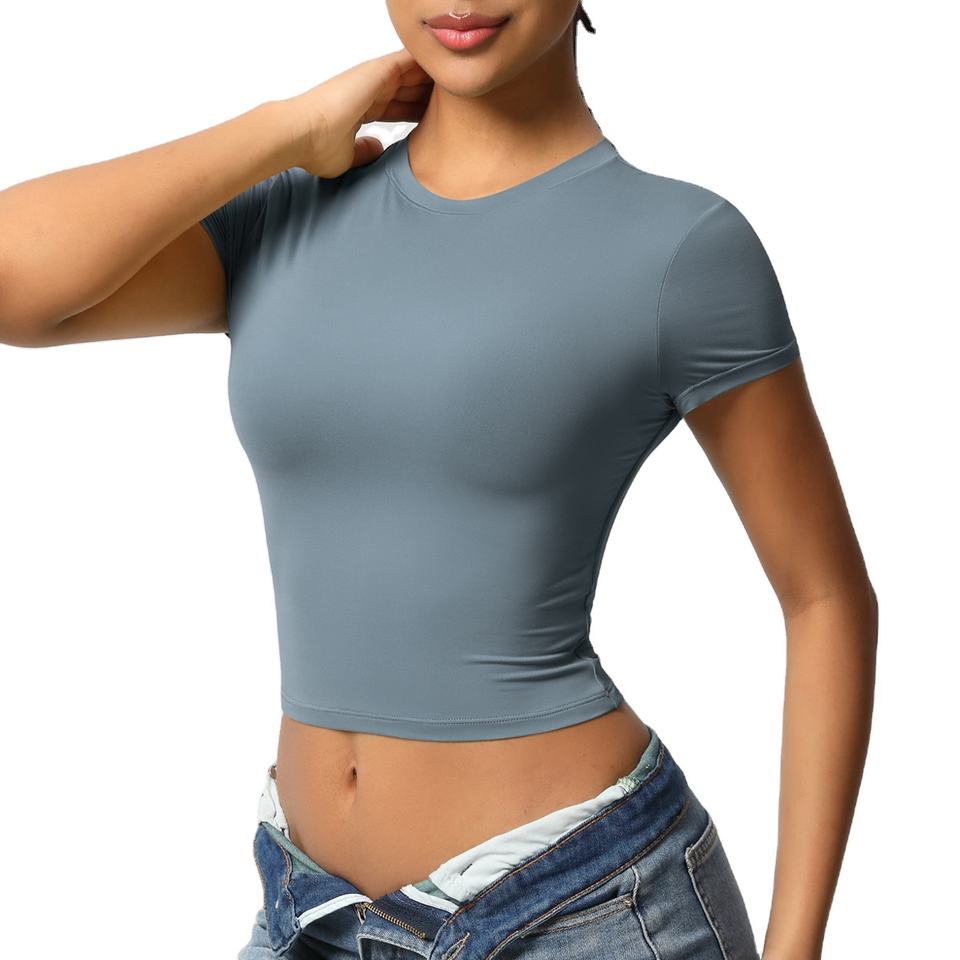 เสื้อครอปท็อปออกกำลังกายสำหรับผู้หญิง ระบายอากาศได้ดี คุณภาพสูง ผลิตจากผ้าโพลีเอสเตอร์/คอตตอนผสม เป็นมิตรกับสิ่งแวดล้อม แห้งเร็ว เหมาะสำหรับฤดูร้อน สไตล์สตรีทแวร์
