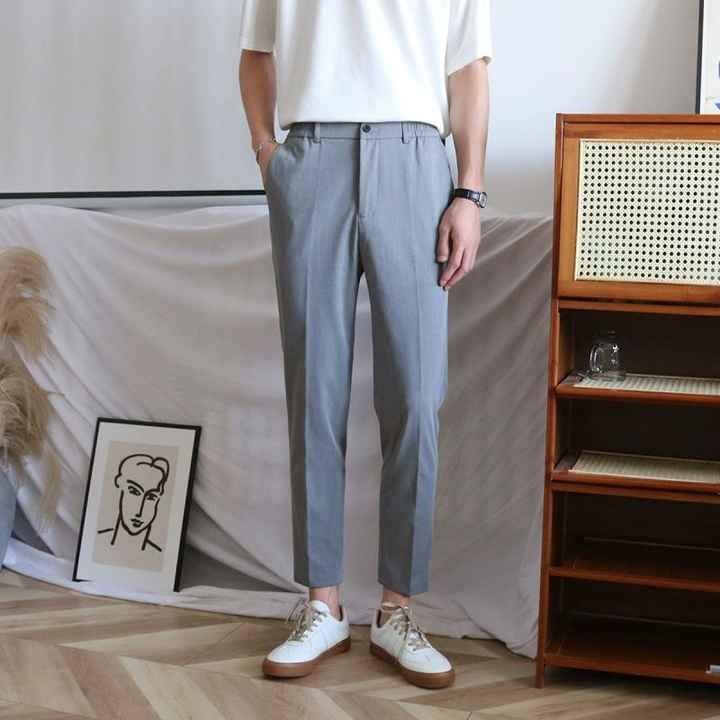 กางเกงคาร์โก้ระบายอากาศได้ดีคุณภาพสูงสำหรับผู้ชายกางเกงลำลองทรงตรงหย่อนคล้อยกางเกงครอปสำหรับผู้ชายฤดูร้อน
