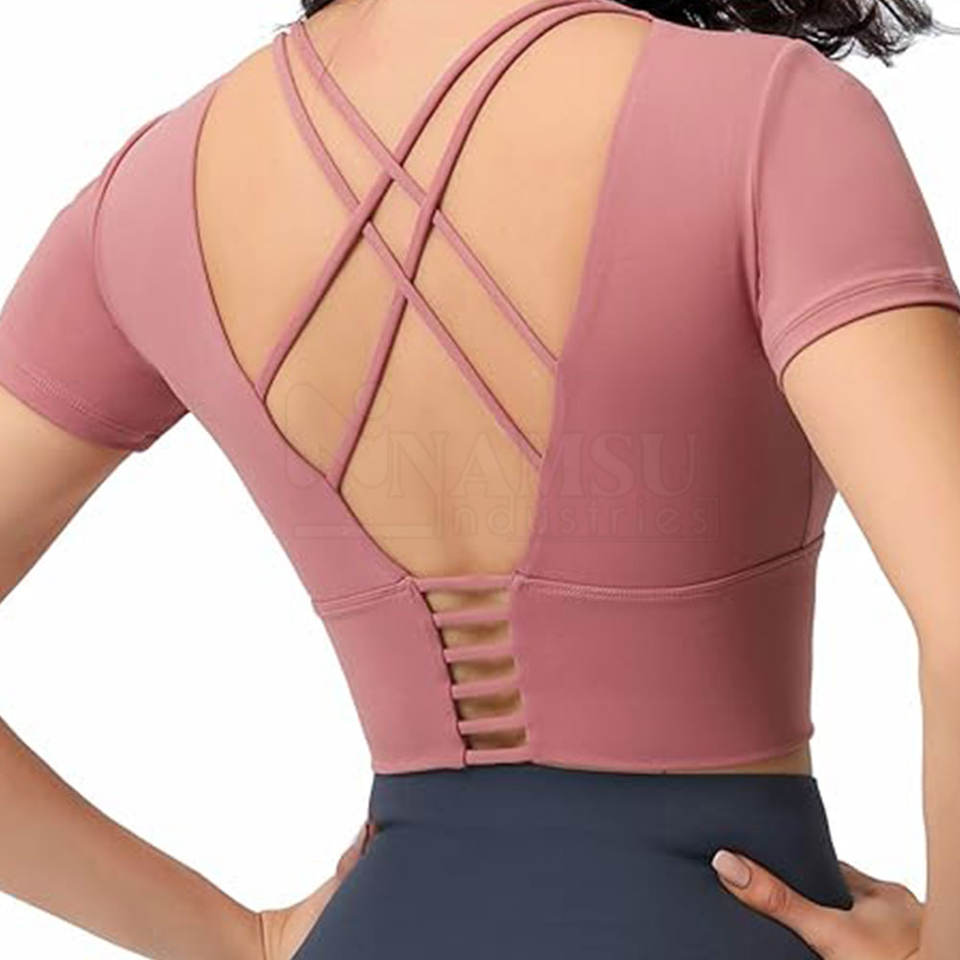 เสื้อครอปท็อปออกกำลังกายสำหรับผู้หญิง ผ้าฝ้าย/โพลีเอสเตอร์ ระบายอากาศได้ดี คุณภาพสูง สีพื้น ผลิตในปากีสถาน เป็นมิตรต่อสิ่งแวดล้อม แห้งเร็ว