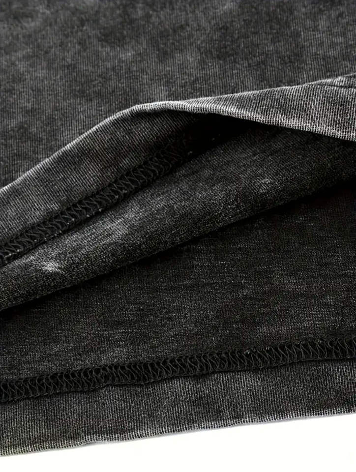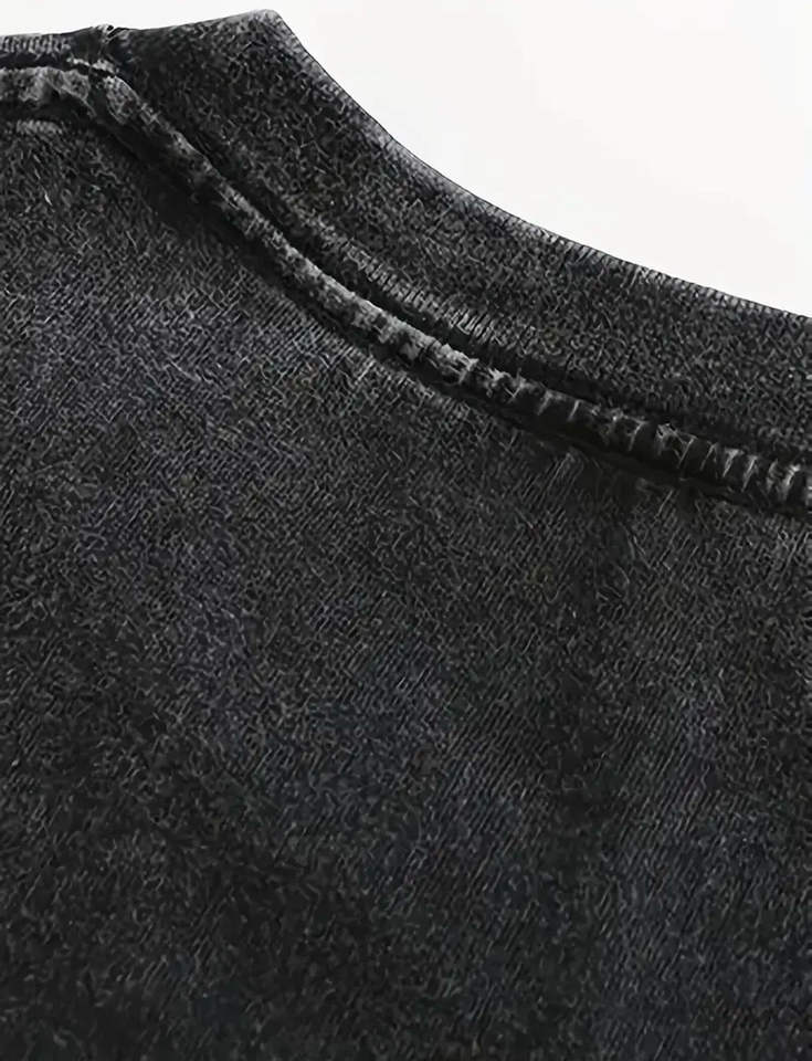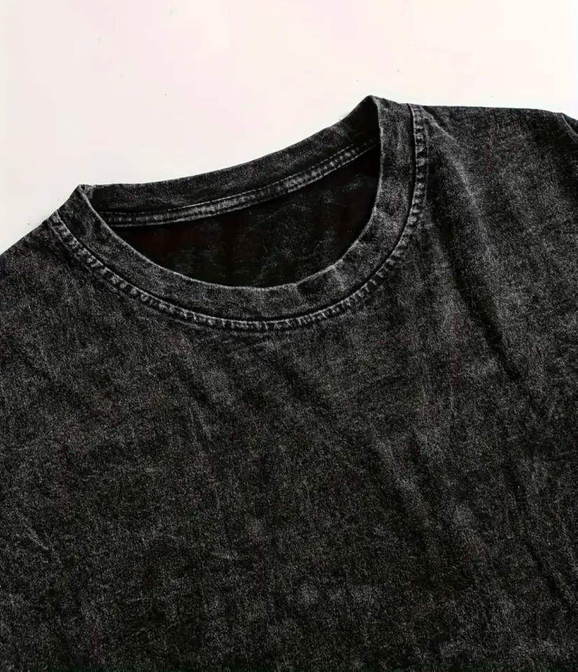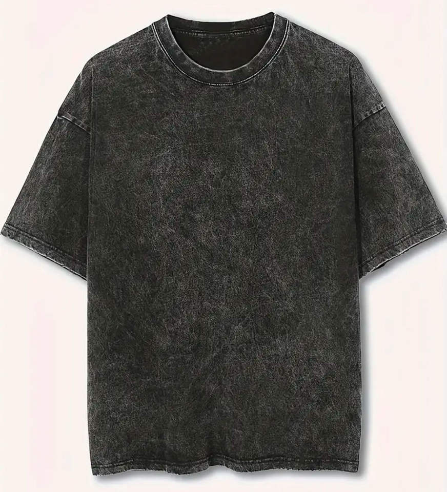 เสื้อยืดผู้ชายทรงโอเวอร์ไซส์ ผ้าเจอร์ซีย์คอตตอน 100% ล้างสีแบบวินเทจ ระบายอากาศได้ดี สไตล์ฮิปฮอป สีดำ พิมพ์โลโก้ตามสั่ง