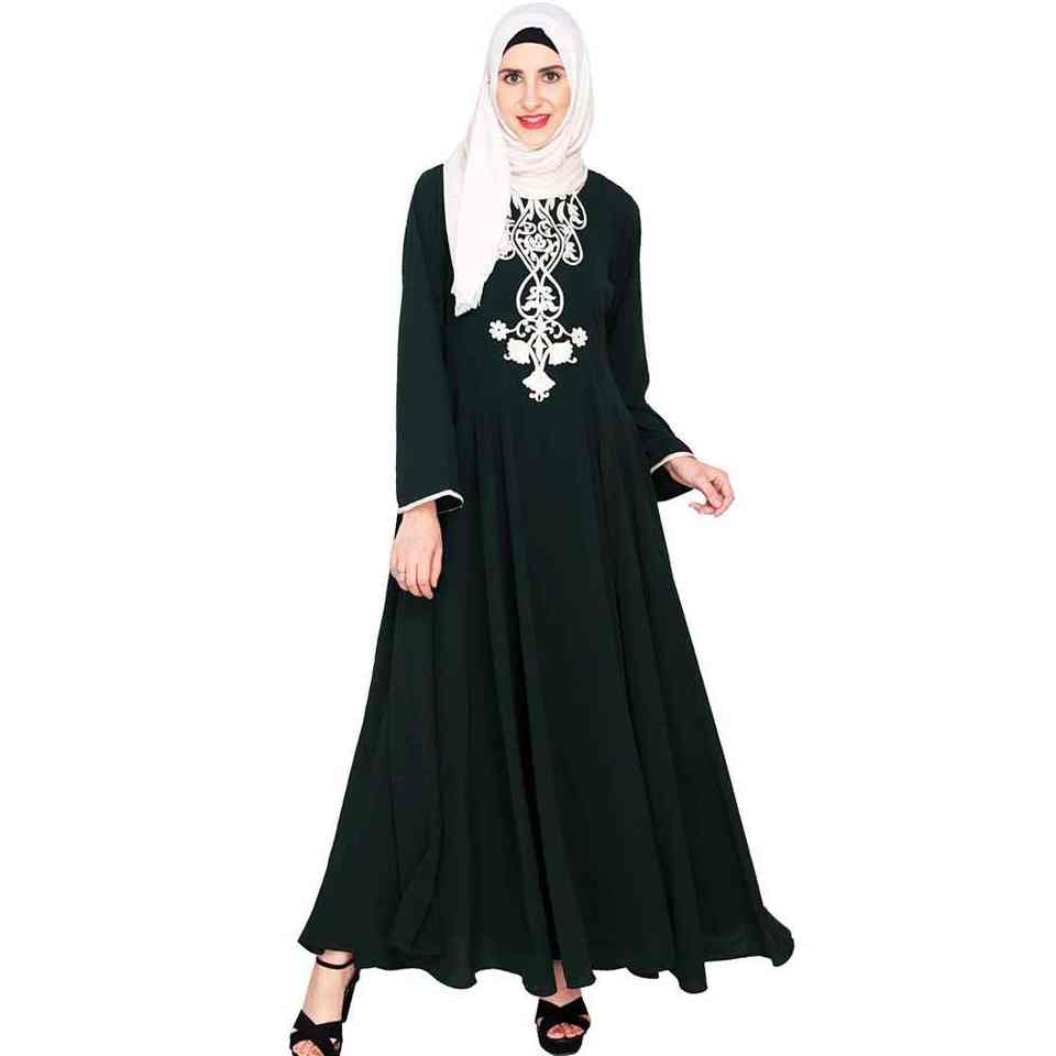 เดรสรัดรูประบายอากาศได้ดีแบบเรียบชุดเดรสอาบายะห์คอกลมมุสลิมชุดอาบายาอิสลามชุดเดรสสุภาพ