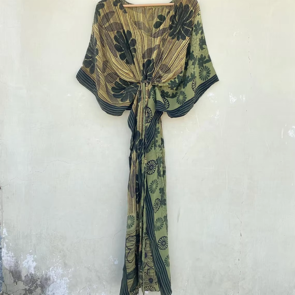 ชุดเดรสคาฟตันผ้าไหมเนื้อนุ่มแบบอินเดียระบายอากาศได้ผ้าชีฟองเป็นมิตรกับคุณแม่