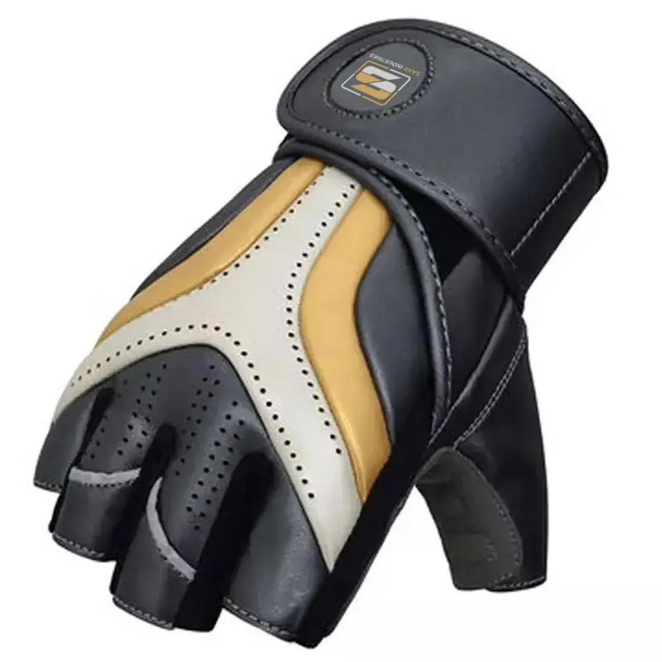ถุงมือยกน้ำหนักครึ่งนิ้ววัสดุหนังระบายอากาศได้สำหรับการฝึกเพาะกายออกกำลังกายและฟิตเนสสำหรับใช้ในยิม