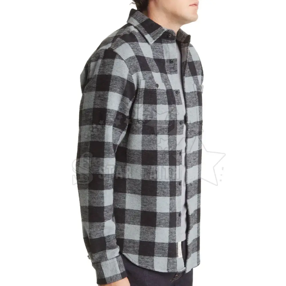 เสื้อเชิ้ตผ้าสักหลาดลายสก๊อตสำหรับผู้ชายผ้าฝ้ายน้ำหนักเบาระบายอากาศได้ดีออกแบบได้ตามต้องการ