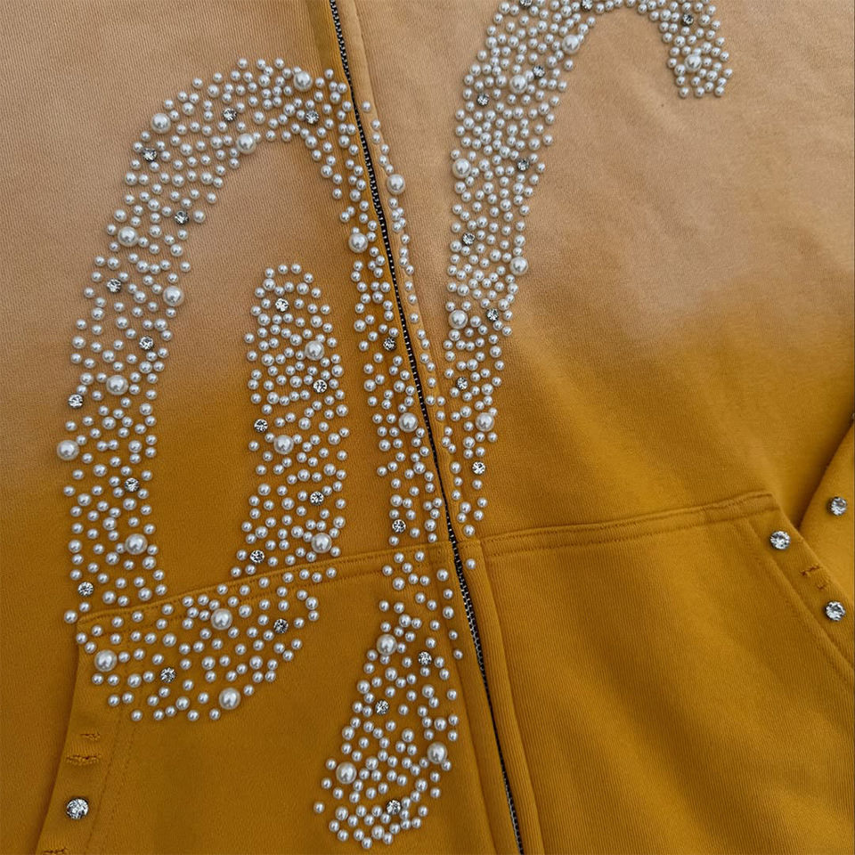 เสื้อฮู้ดดี้ปักลายหรูหรา ระบายอากาศได้ดี ประดับด้วยคริสตัล ลายเรียบ ผ้าฝ้ายนุ่ม สำหรับสวมใส่ลำลอง สตรีทแวร์ประจำวัน